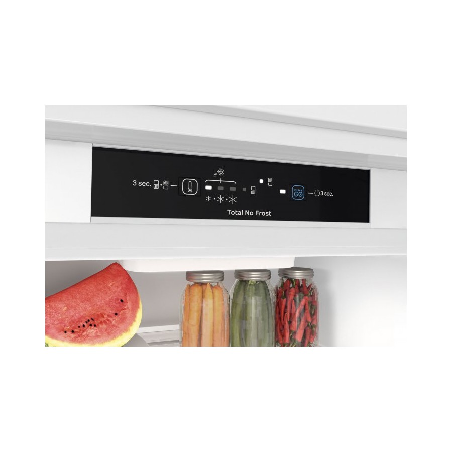 Технологія Total NoFrost автоматично осушує повітря у морозильній камері, завдяки чому немає потреби витрачати час на розморожування. Крім того, заморожені продукти не прилипають до стінок, етикетки залишаються розбірливими, а місце зберігання продуктів завжди чистим. Інтелектуальні датчики, усередині холодильної камери, відстежують температуру та щоб забезпечити оптимальний рівень, необхідний для зберігання продуктів.