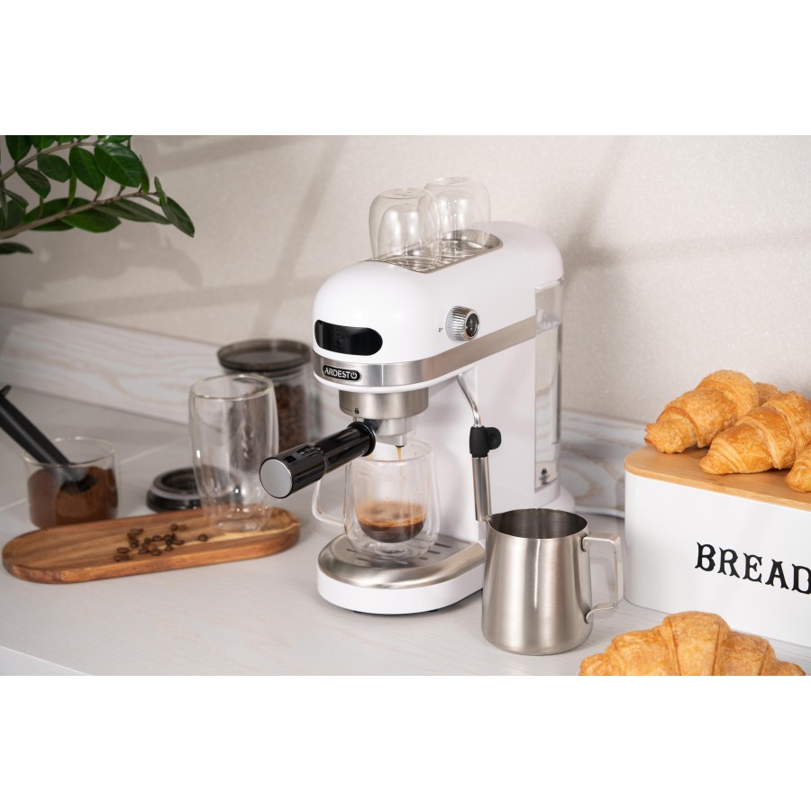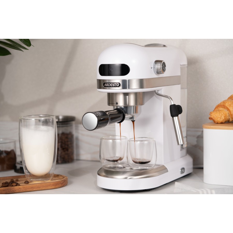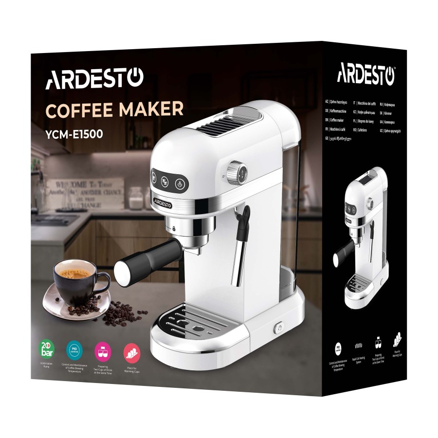 Із ріжковою кавоваркою YCM-E1500 користувачеві відкриються широкі можливості приготування смачної натуральної кави: еспресо, американо, лате, капучино, ристрето та інші види кавових напоїв. Час екстракції кави – 28 секунд. Крім того, кавоварку оснащено функцією попереднього замочування кави (8 секунд) і капучинатором із подаванням пари температурою 130 °С.