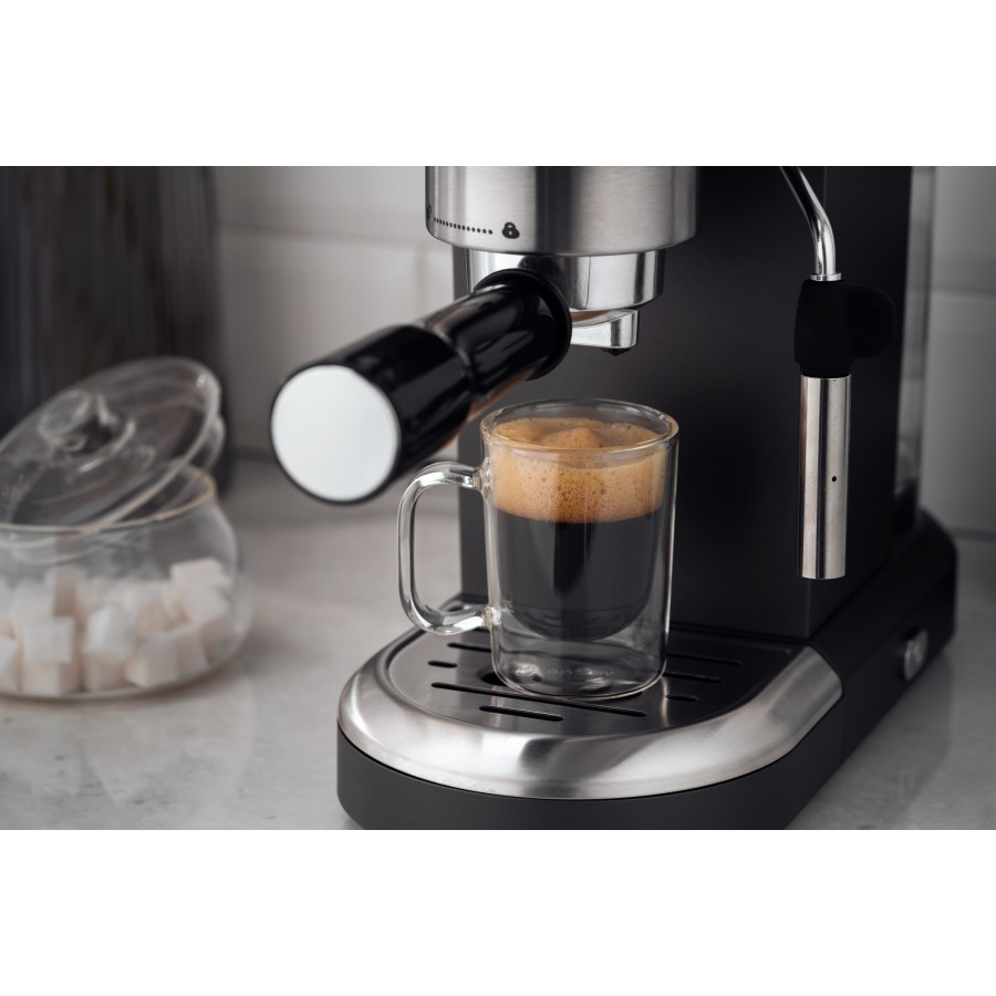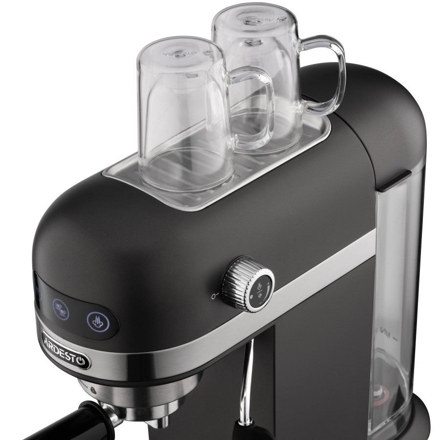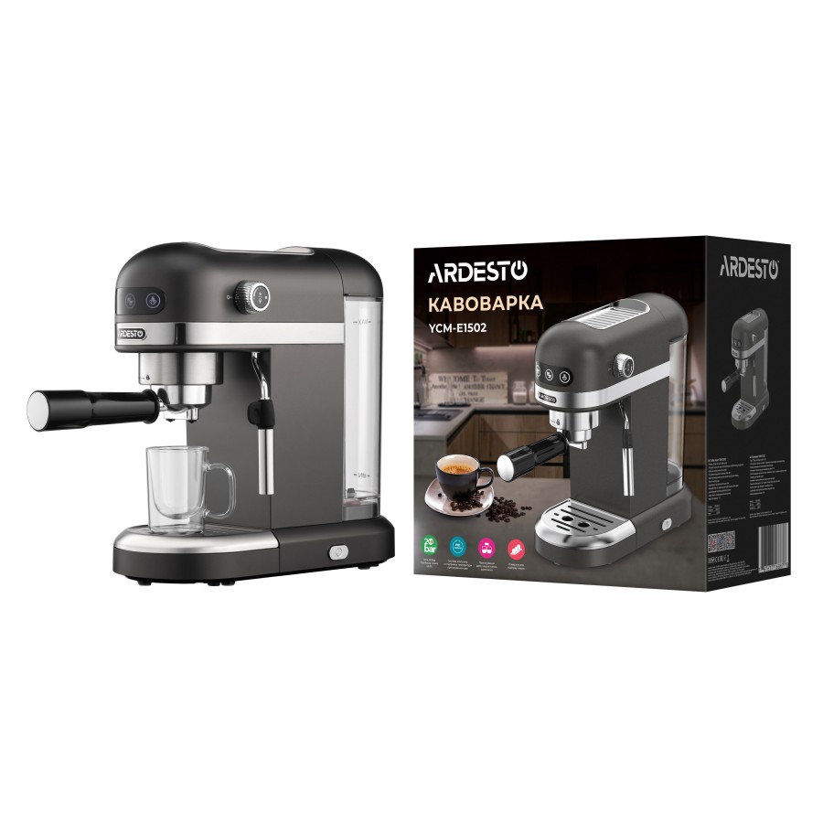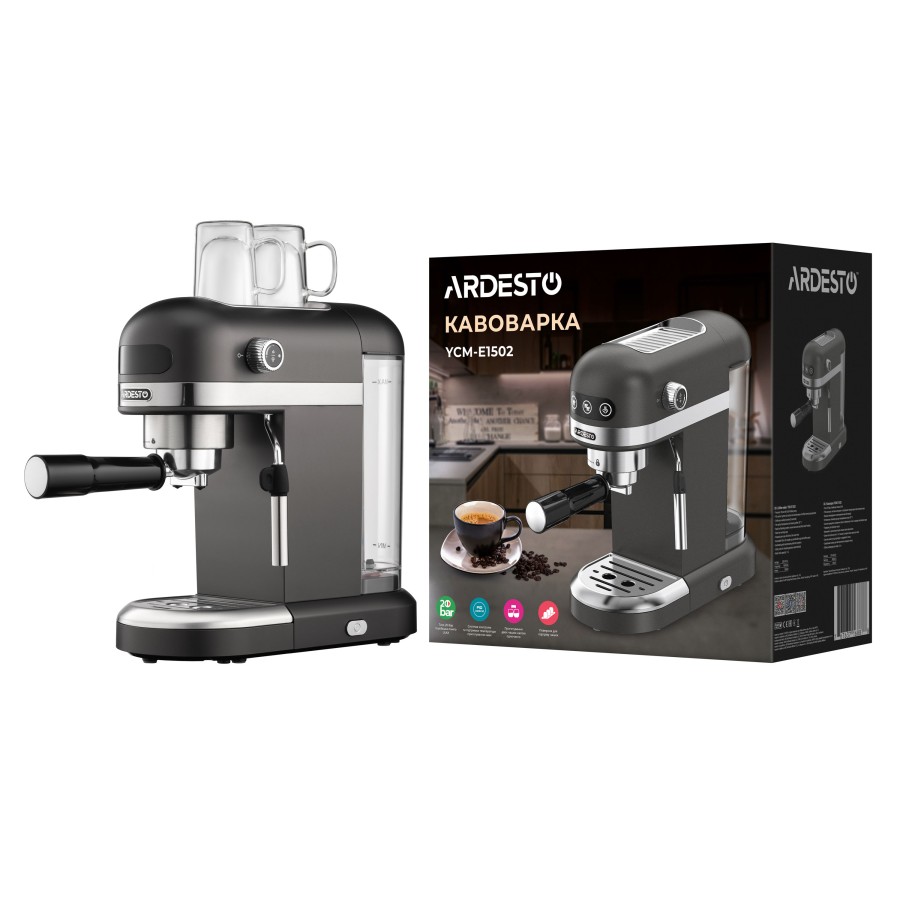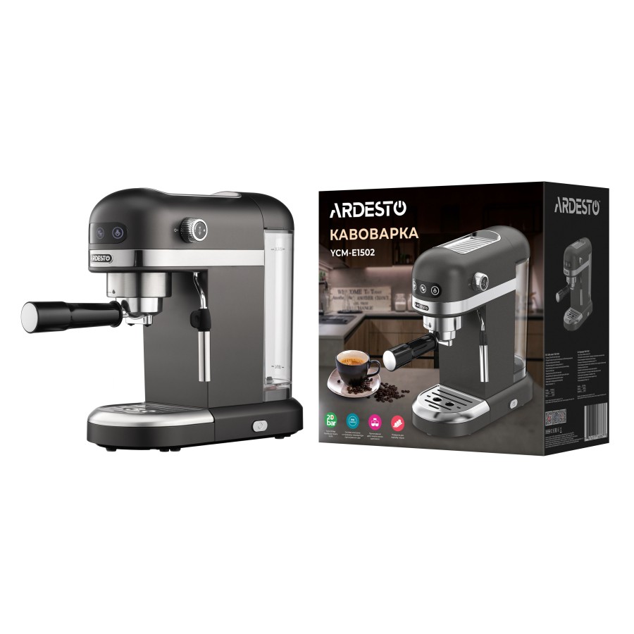 Крім елегантного дизайну, ріжкова кавоварка YCM-E1502 вирізняється й гідними технічними характеристиками, зокрема: потужність – 1 350 Вт, італійська помпа ULKA, що забезпечує тиск 20 бар, наявність капучинатора, система швидкого нагрівання спіралі (забезпечує точне та швидке нагрівання води). Резервуар для води об’ємом (1,4 л), якого вистачить для приготування напоїв для всієї родини за один раз. І на додачу: у кавоварці передбачене спеціальне місце з підігрівом для зберігання чашок для еспресо.