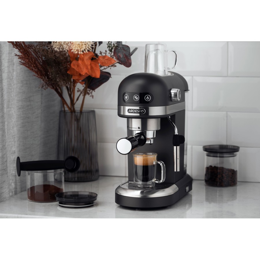 Із ріжковою кавоваркою YCM-E1502 користувачеві відкриються широкі можливості приготування смачної натуральної кави: еспресо, американо, лате, капучино, ристрето та інші види кавових напоїв. Час екстракції кави – 28 секунд. Крім того, кавоварку оснащено функцією попереднього замочування кави (8 секунд) і капучинатором із подаванням пари температурою 130 °С.