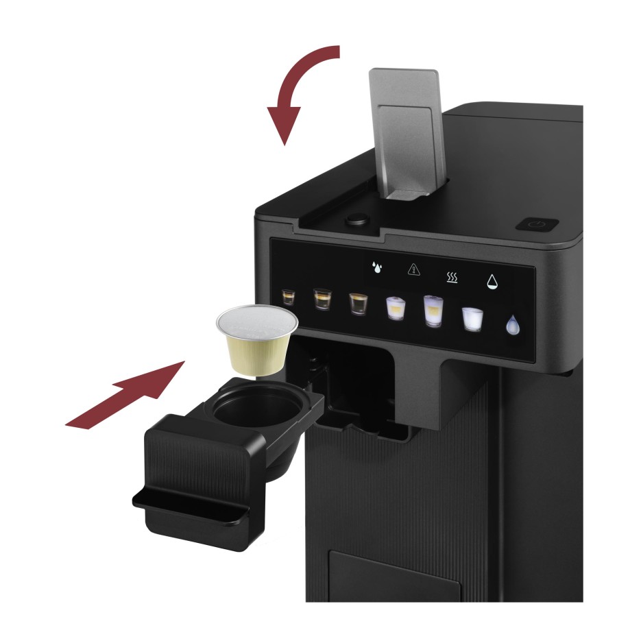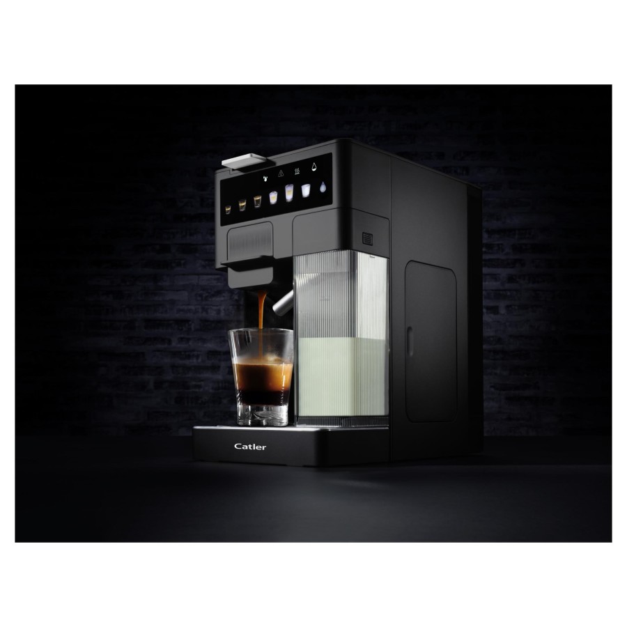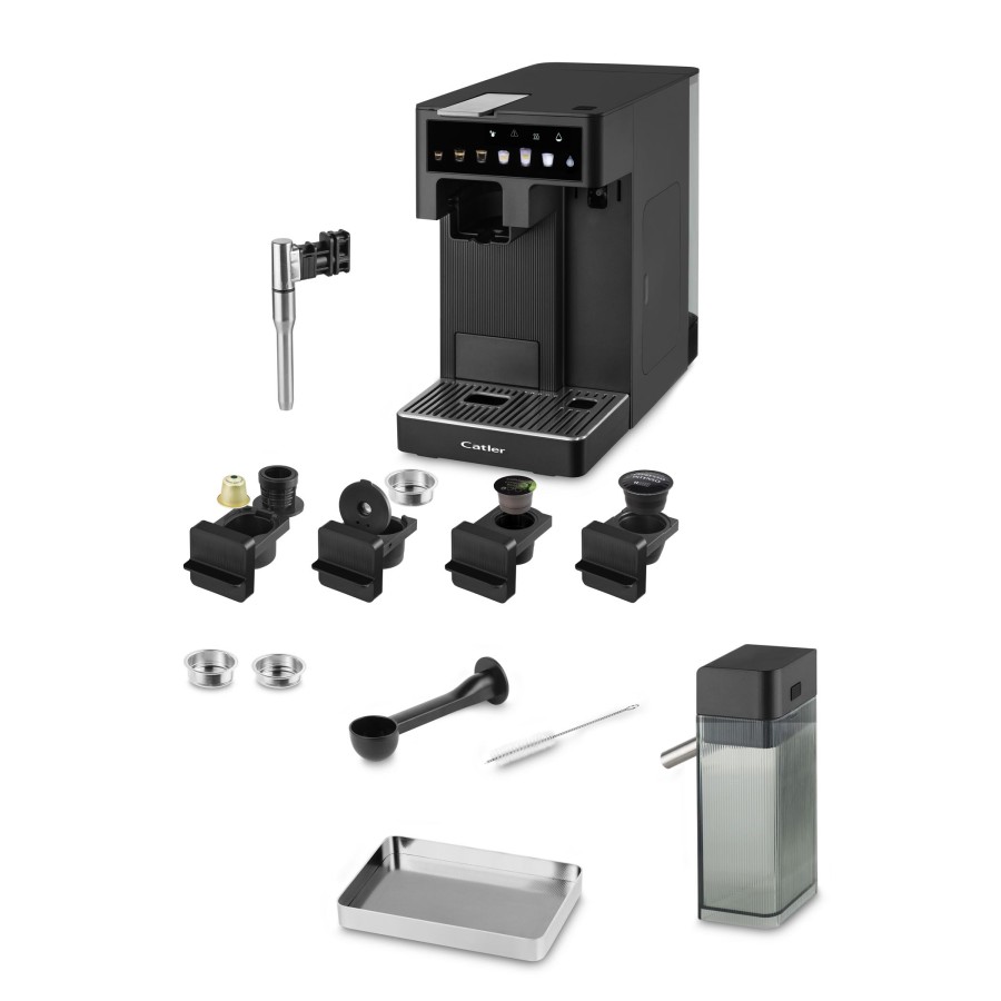 Має три перехідники для найпоширеніших розмірів капсул і перехідник для меленої кави. Він також оснащений резервуаром для молока та спінювачем молока. Catler Renzo віддає належне не лише італійській архітектурі, а й ідеальному еспресо. Дизайн, який відповідає функції, забезпечує не тільки чудовий зовнішній вигляд, але й максимальний комфорт користувача щодня.