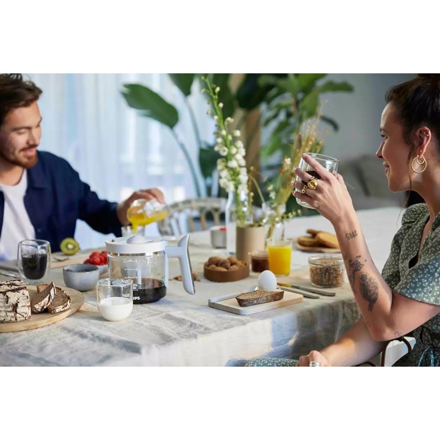 Функція автоматичного відключення вимикає прилад через 30 хвилин, тим самим заощаджуючи електроенергію та забезпечуючи додаткову безпеку. Цикл приготування для повного глечика займає всього 10 хвилин, що також сприяє економії електроенергії.