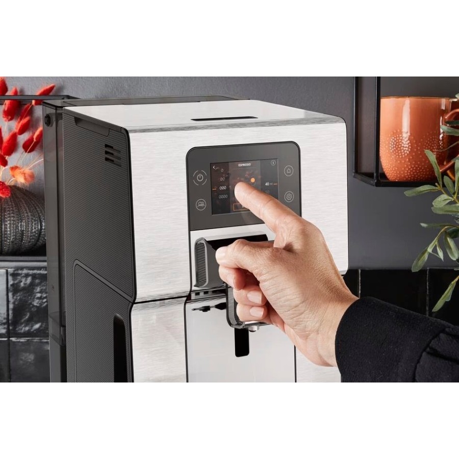 завдяки сенсорному екрану, готуйте улюблену каву одним дотиком. Він має інтерфейс з персональними налаштуваннями, що призначений для спрощення вибору напоїв і обслуговування пристрою.