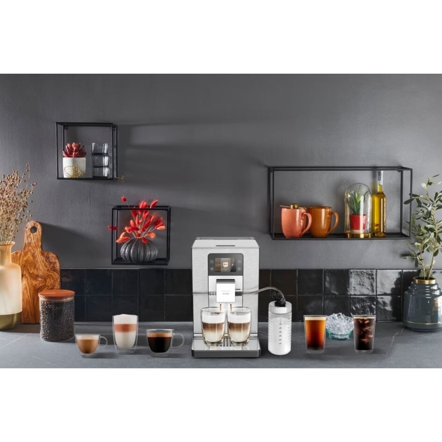 Система нагріву води з нержавіючої сталі Thermoblock нагрівається рівномірно та швидко. Тому ти отримаєш дійсно гарячу каву з першої ж чашки. Інноваційна система спінювання молока створює молочні напої з ідеально пружною пінкою та правильним балансом кави й молока.