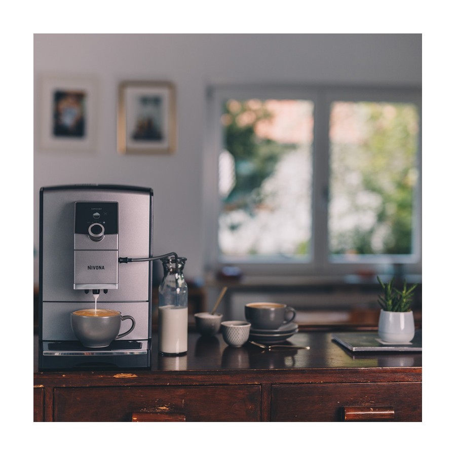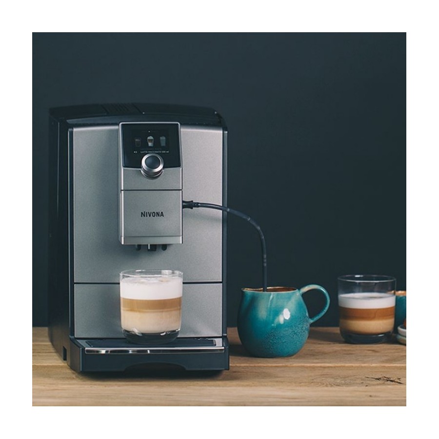 Для приготування капучіно з ніжною молочною пінкою передбачено автоматичний режим, що активується одним натисканням. Автоматична кавомашина Nivona CafeRomatica 795 (NICR 795) сенсорними кнопками кольорового TFT дисплея та віддалено зі смартфона через вбудований блок Bluetooth.