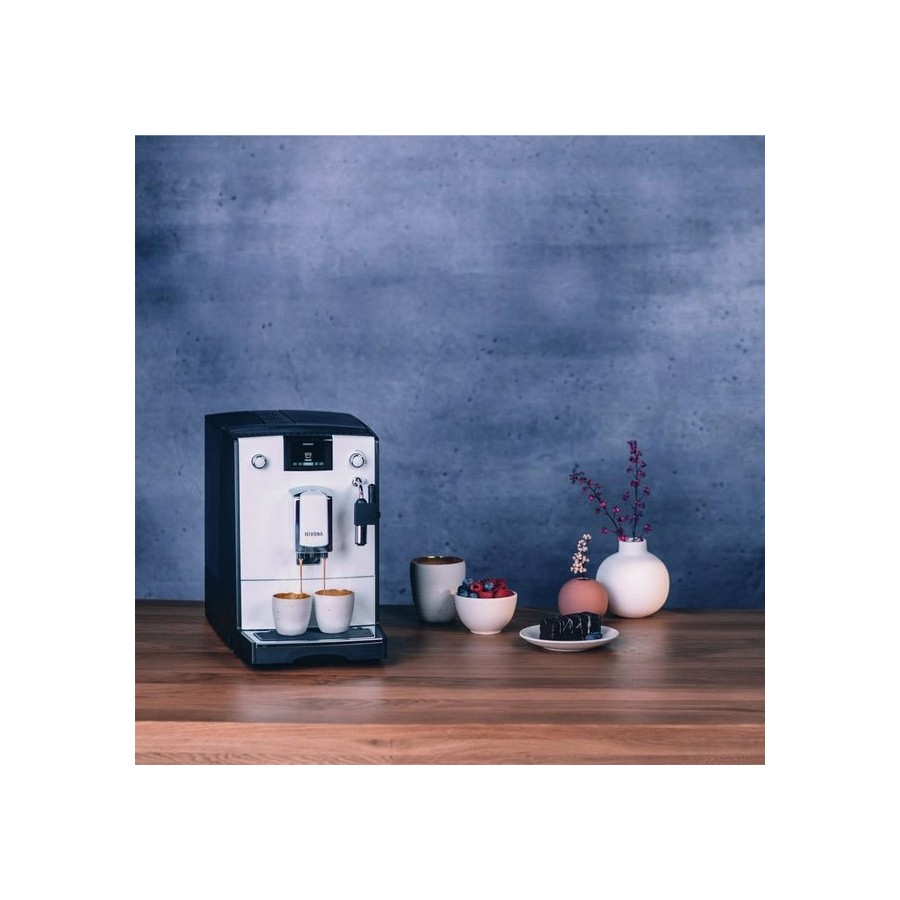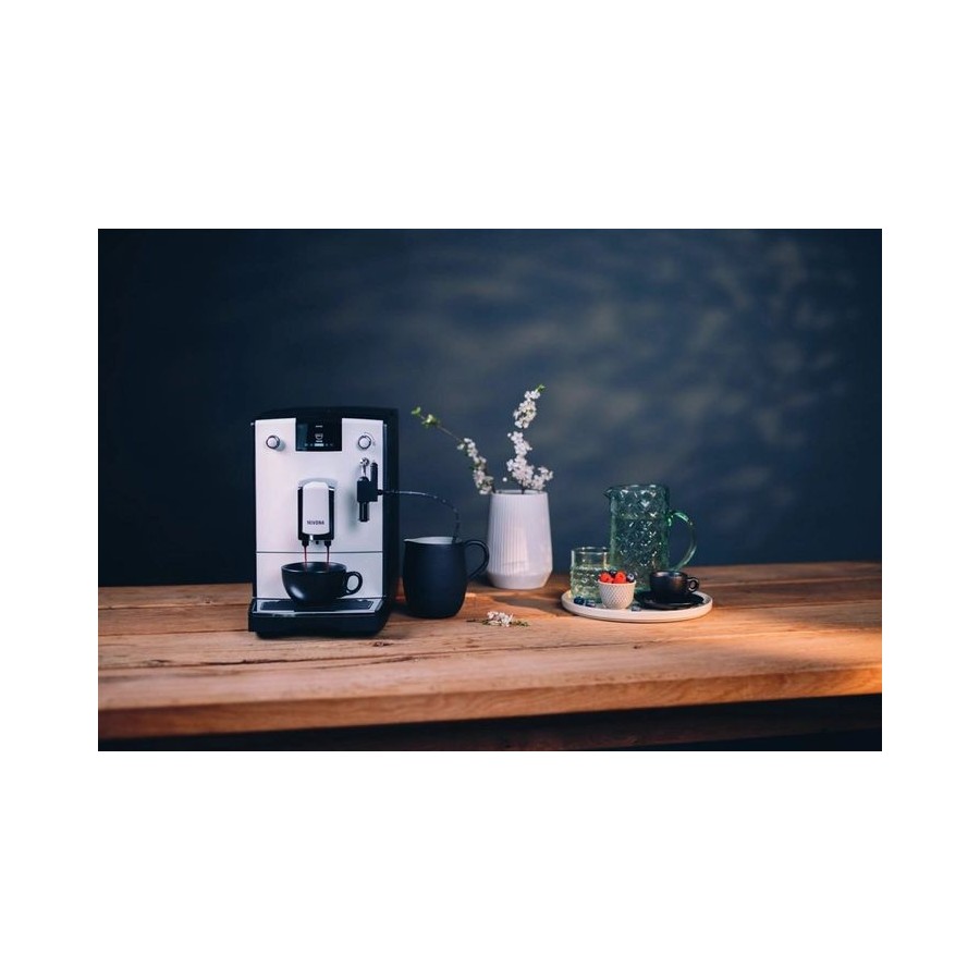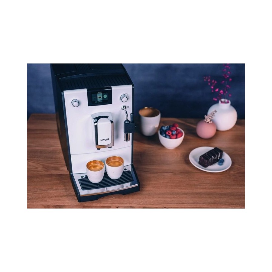 NIVONA CafeRomatica NICR 550 - кавомашина Nivona 5 серії з оновленим кольоровим TFT-дисплеєм для комфортного керування! Зробіть ранок простішим і залишок дня теж: моделі 5-ї серії створюють чудово ароматну свіжомелену каву. Встаньте з правильного боку ліжка з кавою з автоматичної кавомашини. Випийте чашку кави або еспресо на двох. Модель початкового класу пропонує більше, ніж просто чудову кавомашину. Преінфузія (блумінг). Попереднє змочування кавової таблетки перед початком екстракції еспресо. Знімний блок заварювання. Для якісного очищення немає необхідності звертатися до сервісного центру.