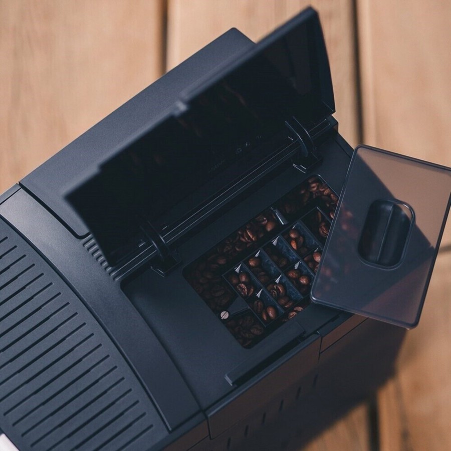 Модель оснащена конічними жорнами з нержавіючої сталі з можливістю регулювання ступеня помелу. Доступні налаштування міцності кави (3 рівні), температури приготування (3 рівні) та об’єму напою (від 20 до 240 мл). Завдяки ручному капучинатору Spumatore користувачі можуть готувати молочну піну для капучино чи лате. Також підтримується приготування двох чашок чорної кави одночасно.