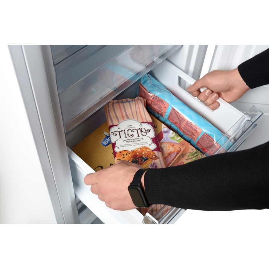 Для керування температурними режимами використовується зручний механічний важіль з трьома рівнями – мінімальним, середнім та максимальним. Також підтримується функція швидкої заморозки.