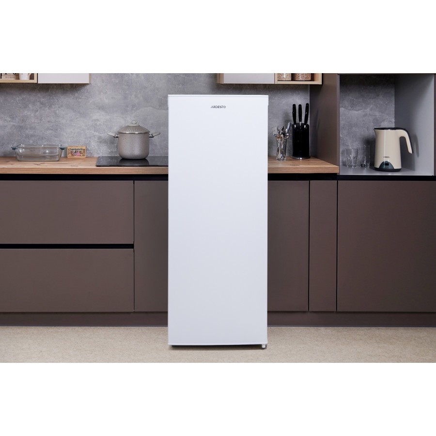 Загальний об’єм Ardesto URM-160M – 170 л, де корисний об’єм дорівнює 157 л. Для зберігання продуктів є п’ять відсіків – два з прозорими дверцятами та три висувних ящика, з ручками для транспортування. Нижній відсік отримав скляну полицю, яка розділяє простір навпіл.