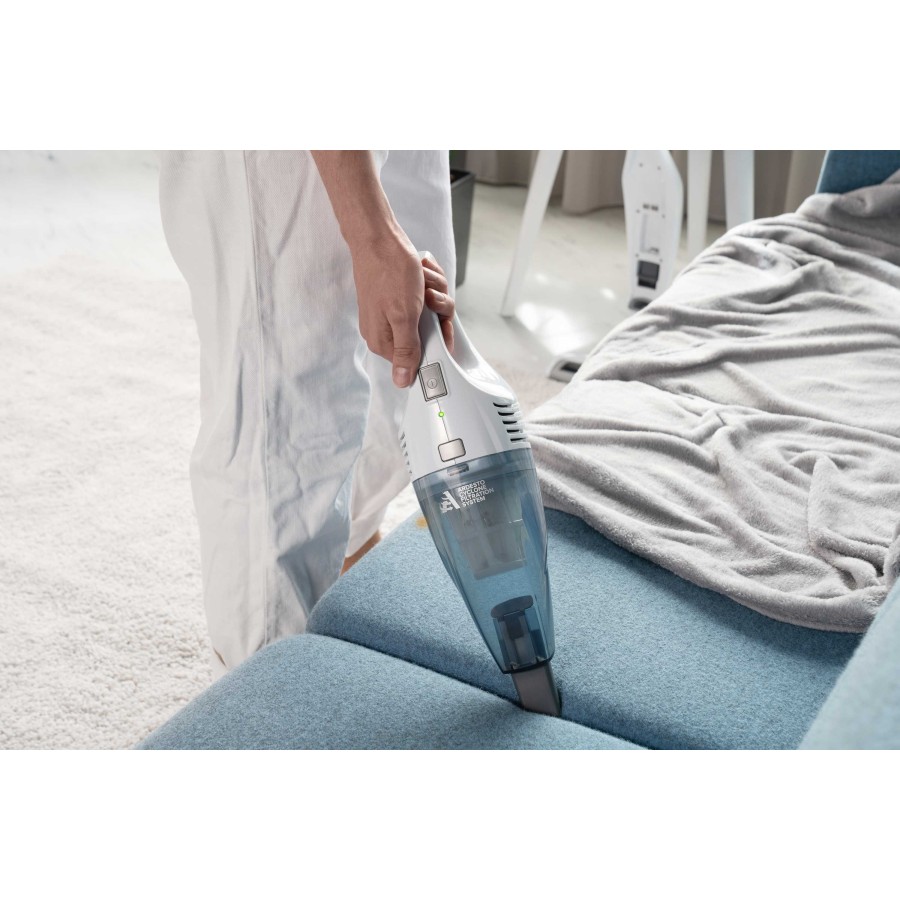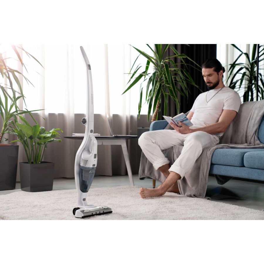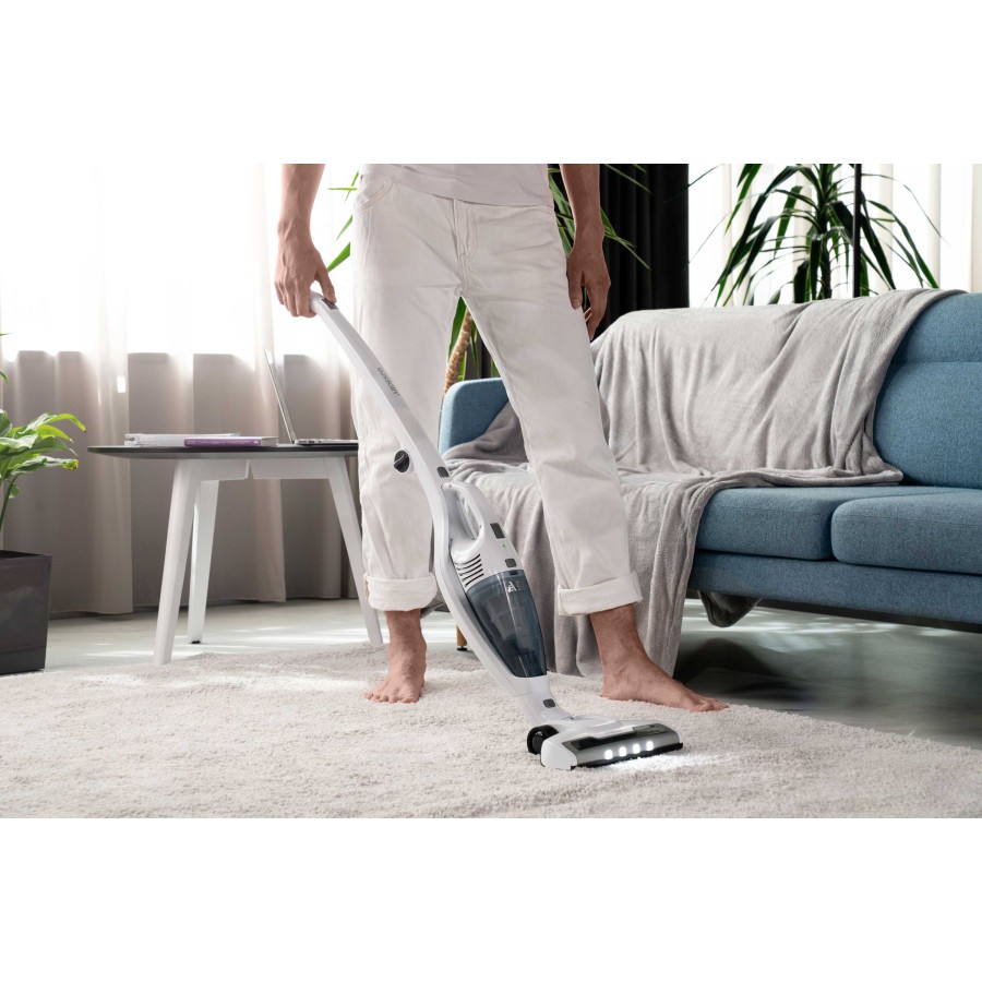 Для більш ефективного прибирання щітку пилососа оснащено LED-підсвічуванням. За його використання значно зручніше прибирати під столом, ліжком чи шафою. До того ж ця функція набуває особливої актуальності за умов періодичних відключень електрики. Пів години роботи від акумулятора вкупі з можливістю підсвічування – більше не потрібно підлаштовувати побут до графіків відключень електропостачання. Крім цього, пилосос має продуманий комплект постачання, зокрема: турбощітка, насадка для прибирання у важкодоступних місцях і, на додачу, настінне кріплення для вертикального паркування «помічника». Це робить модель оптимальним варіантом навіть для дуже маленьких квартир: пилосос не займає багато місця, проте завжди напохваті.