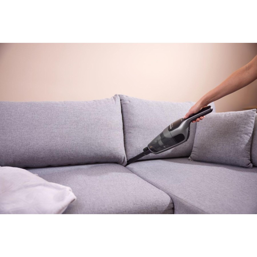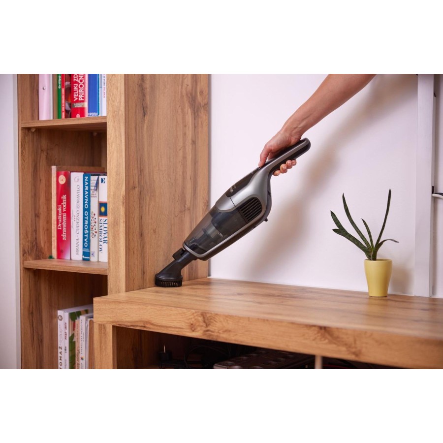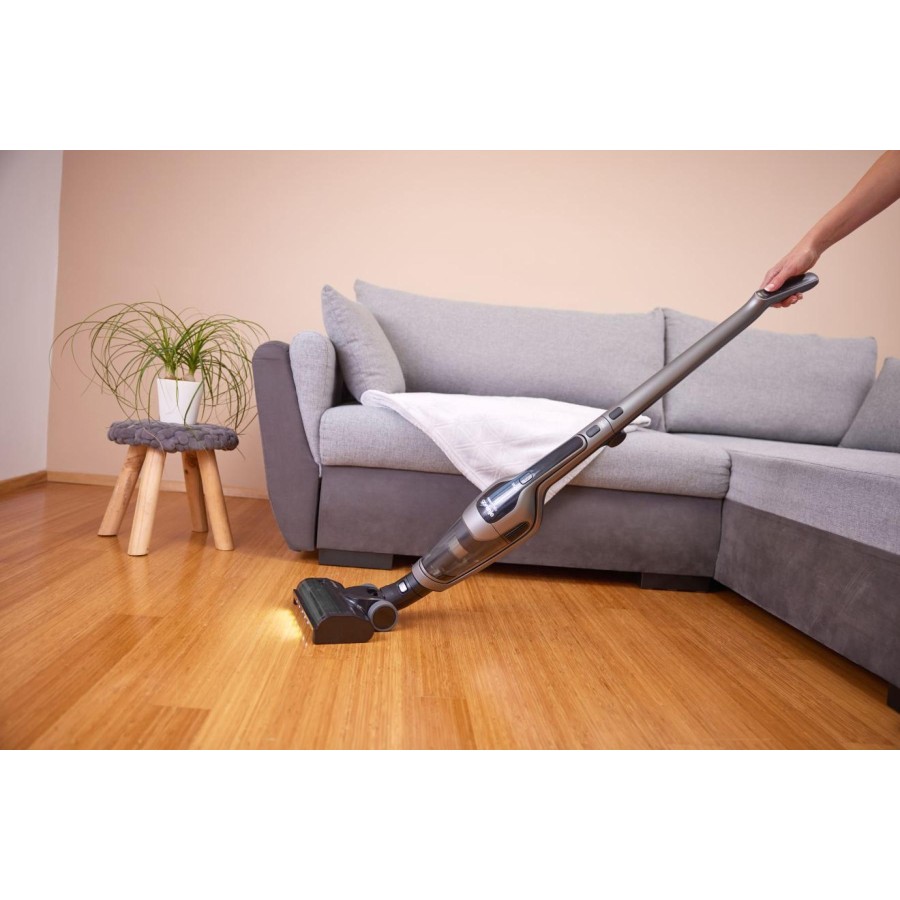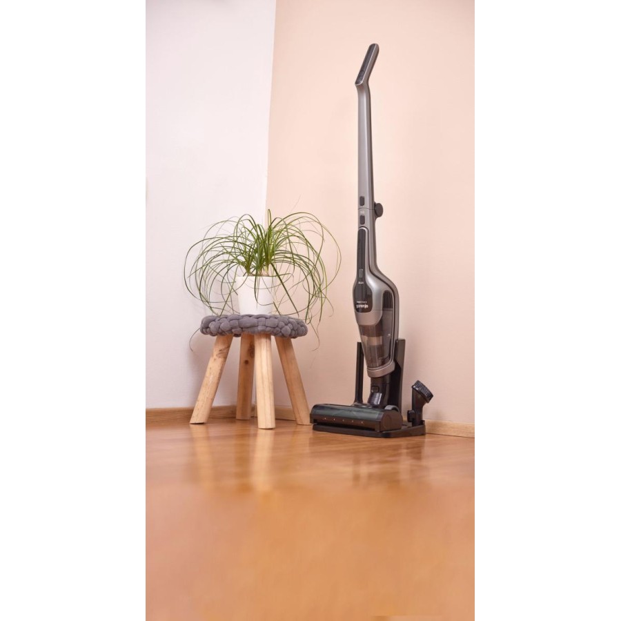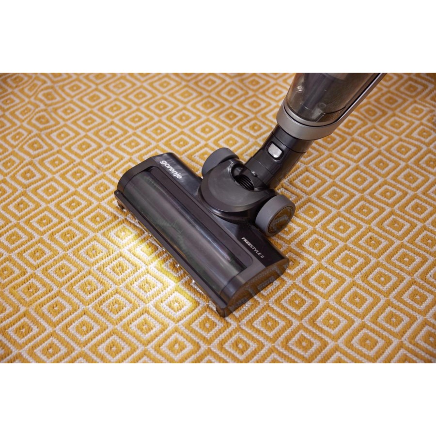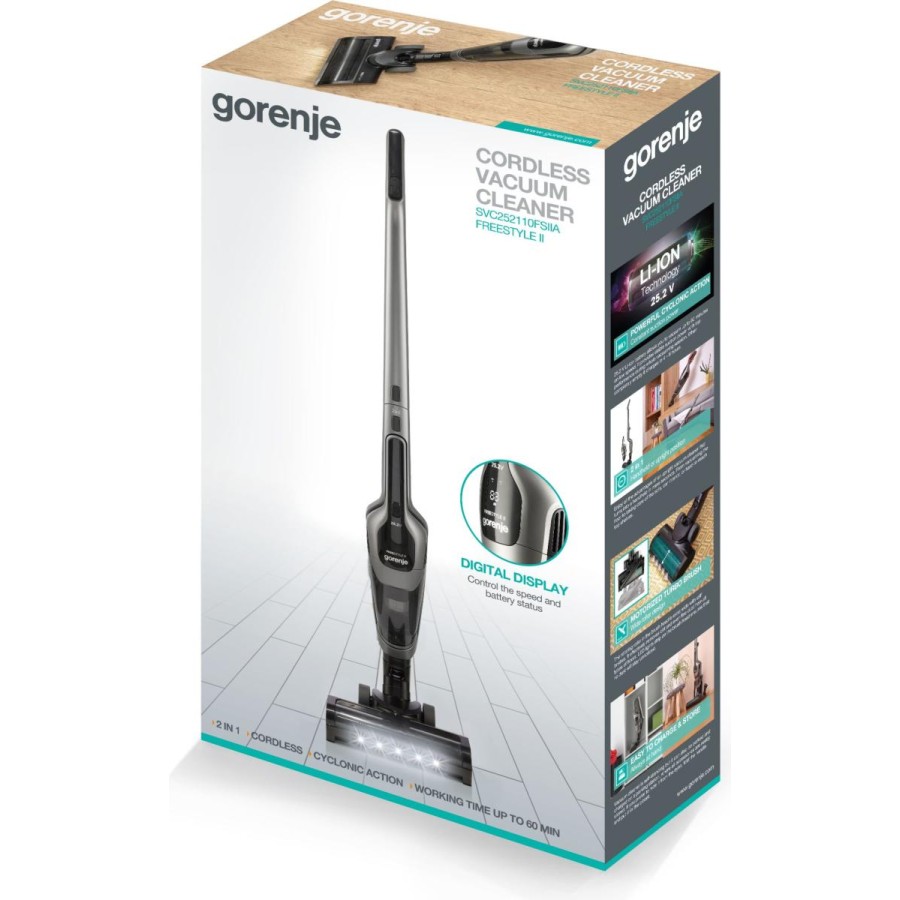 Насолоджуйтесь усіма перевагами вертикального пилососа Gorenje FREESTYLE II, який за лічені секунди перетворюється на ручний. Від прибирання підлоги до догляду за диваном, салоном автомобіля або важкодоступними верхніми полицями. Технологічно досконала турбощітка з надзвичайно широким ворсом для кращого всмоктування. М'які накладки та бампери дбайливо ставляться до дерев'яних підлог і меблів. Знімний щітковий валик, що знімається одним натисканням кнопки, дає змогу швидко та легко видаляти довге волосся та інші забруднення. Повністю складна ручка дає змогу зберігати пилосос у невеликих відсіках. Або ж ви можете поставити пилосос на зарядну док-станцію, щоб він був готовий, коли вам знадобиться.