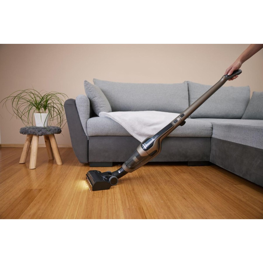 Завдяки новому літієвому акумулятору 28,8 В забезпечується значно довший час роботи порівняно з попередніми моделями. З автономною роботою тривалістю до 77 хвилин на низькій швидкості ви можете прибрати дім за один раз. Це залежить від налаштувань швидкості, типу підлоги та необхідної потужності очищення. Крім того, прилад має значно коротший час заряджання. Лише 4–6 годин досить, щоб ви знову змогли прибирати безлад!