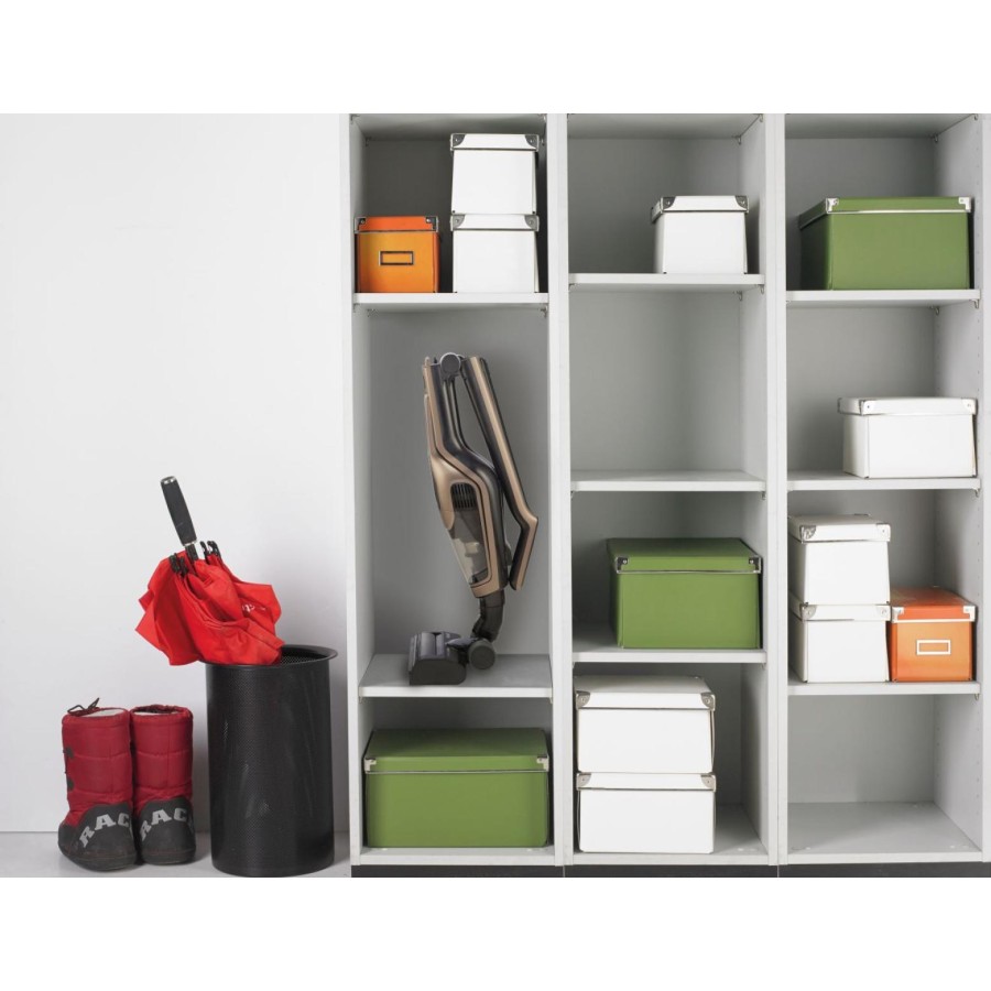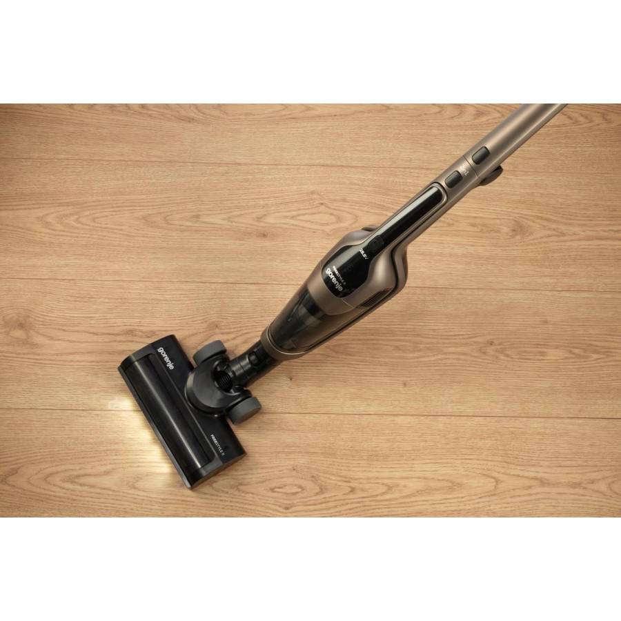 Пилосос може стояти вертикально самостійно, однак його також можна закріпити й зарядити на станції для закріплення, де акуратно зберігаються всі насадки. Якщо ви бажаєте прибрати прилад із поля зору, складіть ручку та розмістіть його в шафі.