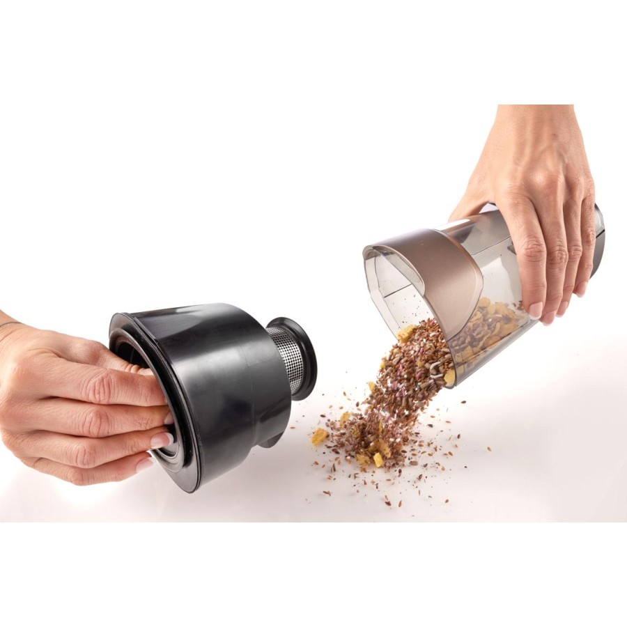 Пил і бруд збираються в збірнику для пилу. Від’єднайте збірник від ручної частини, відкрийте його та витрусіть бруд. Забезпечує економію коштів і екологічність.