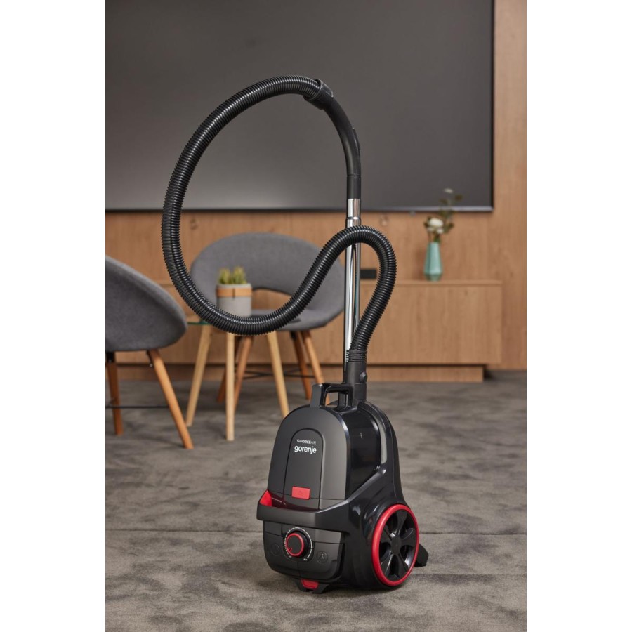 Бруд і пил на високій швидкості всмоктуються через фільтр і потрапляють у збірник для пилу місткістю 3,3 л. Невеликий повітряний вихор усередині збірника відокремлює частинки від повітря та штовхає їх до збірника.