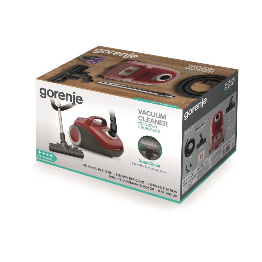Пилосос Gorenje мішковий, 700Вт, 3л, HEPA, щітка Xpand Zone, телескоп, червоний (VCEA23GLR)