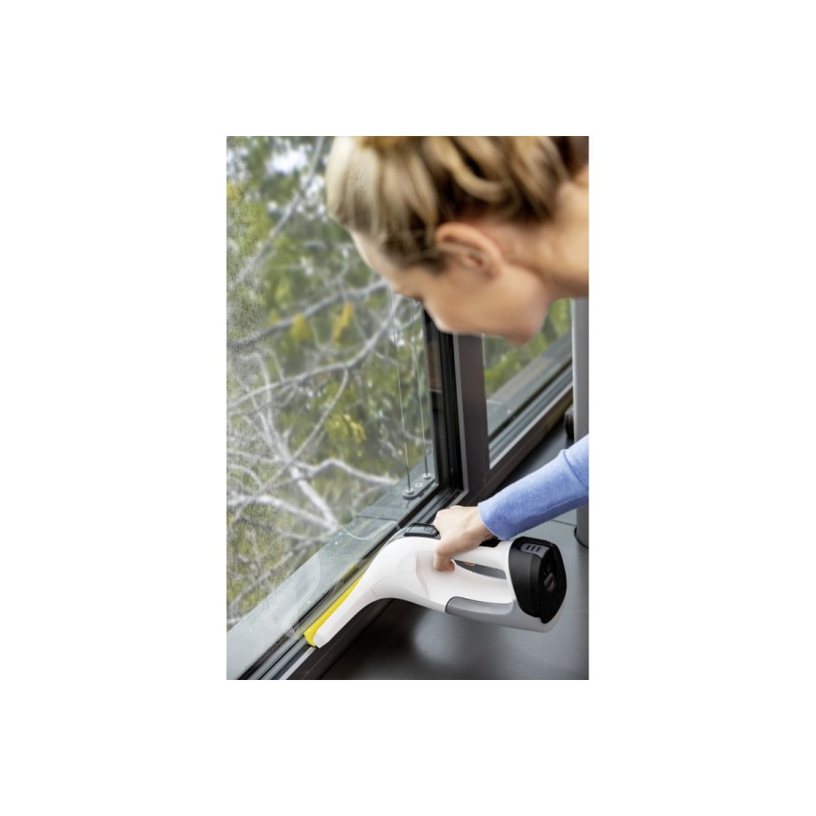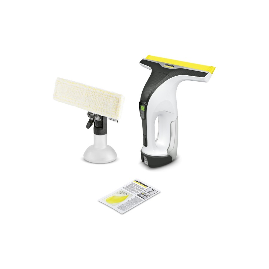 Продумана комбінація пульверизатора для нанесення засобу для чищення, мікроволоконної насадки для його розподілу на склі та самого склоочисника, оснащеного електричним всмоктувальним пристроєм, забезпечує сяючу чистоту скла - на ньому не залишається ніяких смуг або розводів. За допомогою цього апарату можна легко очищати і будь-які інші гладкі поверхні. При цьому ергономічна конструкція акумуляторного склоочисника WV 4-4 Plus забезпечує максимальну гігієнічність: спорожнення і очищення бачка для брудної води проводяться без безпосереднього контакту з нею. Змінний акумулятор Kärcher Battery Power 4 В, що не входить до комплекту поставки, сумісний з усіма апаратами Kärcher на цій акумуляторній платформі.