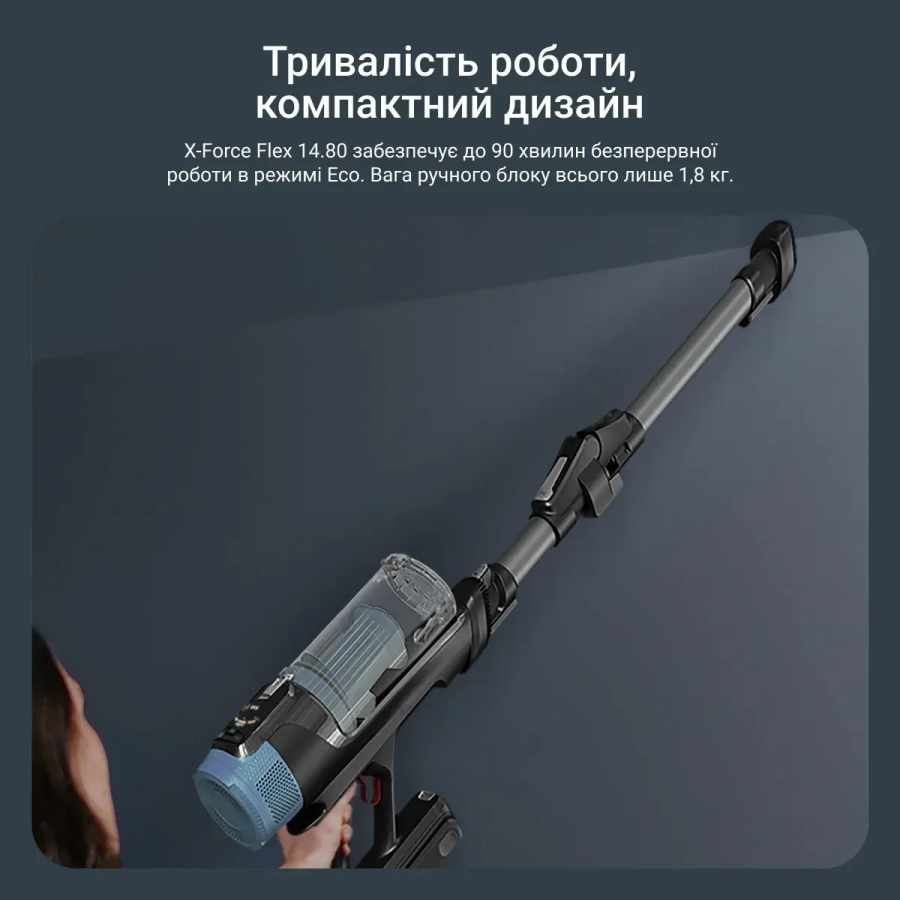 X-Force Flex 14.80 забезпечує до 90 хвилин безперервної роботи в режимі Eco. Вага ручного блоку всього лише 1,8 кг.