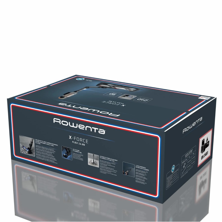 X-Force Flex 14.80, акумуляторний пилосос від Rowenta, забезпечує високу ефективність всмоктування. Акумуляторний пилосос з потужністю всмоктування 240 Вт, обладнаний новітньою щіткою а також автоматичним регулюванням потужності всмоктування для ефективного очищення всіх підлог, особливо килимів.