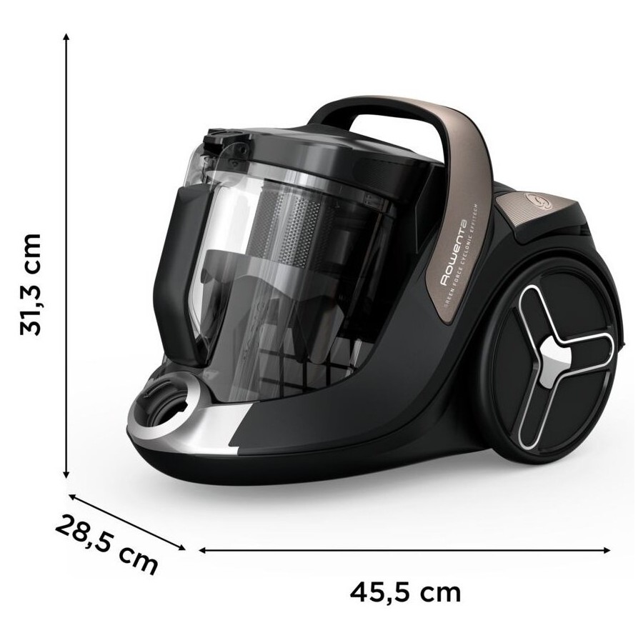Пилосос має таку ж продуктивність, як і безмішковий пилосос Rowenta з максимальною потужністю 900 Вт, забезпечує наднизьке споживання завдяки двигуну Effitech®, який економить 40% енергії.