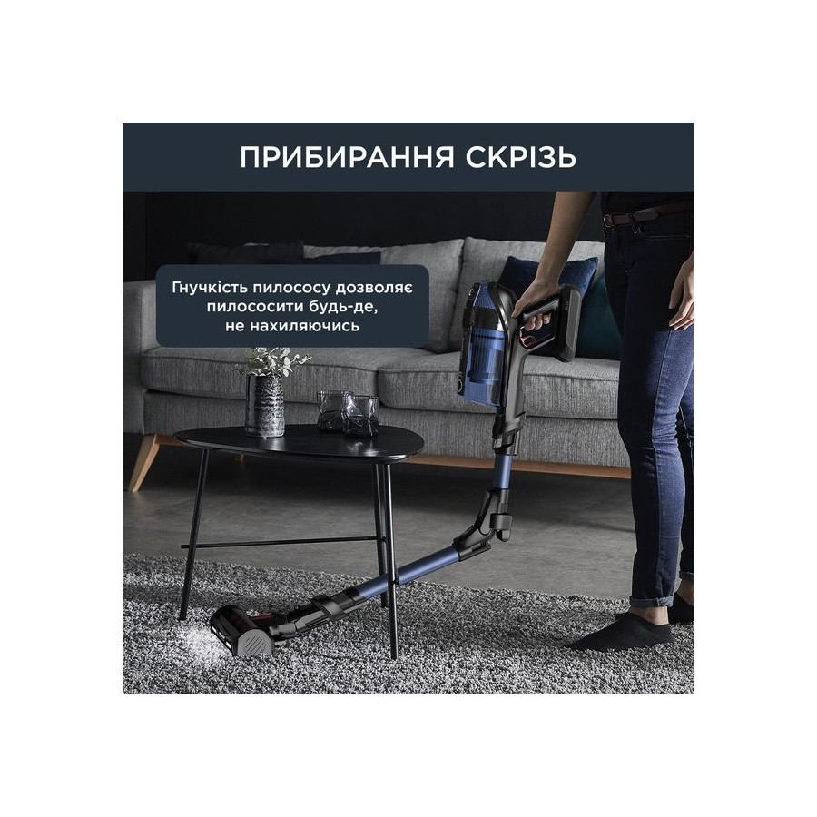 Відкрийте для себе унікальний досвід прибирання, доповнений фірмовими технологіями Rowenta: технологія Flex дозволяє прибирати в 4 рази нижче під меблями, не нахиляючись, дисплей Smart Control у реальному часі, автоматичне регулювання потужності всмоктування залежно від типу підлоги тощо.