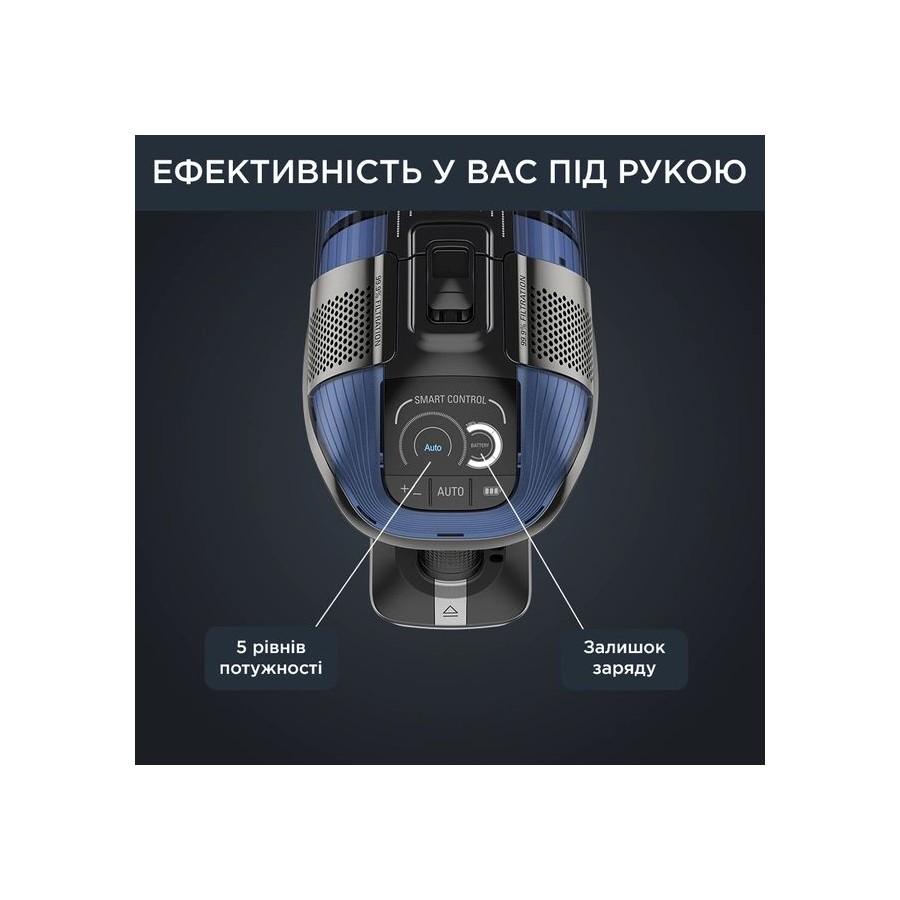 Дисплей Smart Control показує залишок заряду батареї та сповіщує про необхідність очищення фільтра, а також дозволяє регулювати потужність відповідно до ваших потреб за допомогою 4 різних рівнів і тригера Boost.