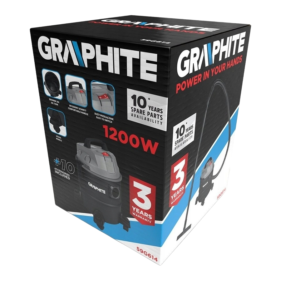 Великий пилозбірник: Об'єм пилозбірника становить 20 літрів, що дозволяє проводити прибирання тривалий час без необхідності частого спустошення.