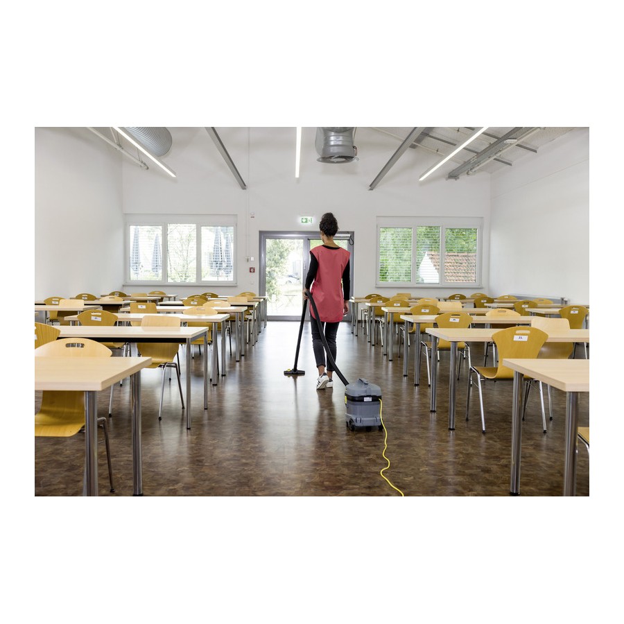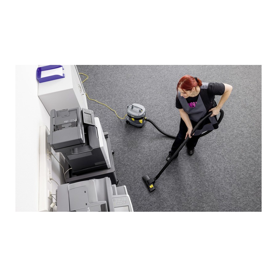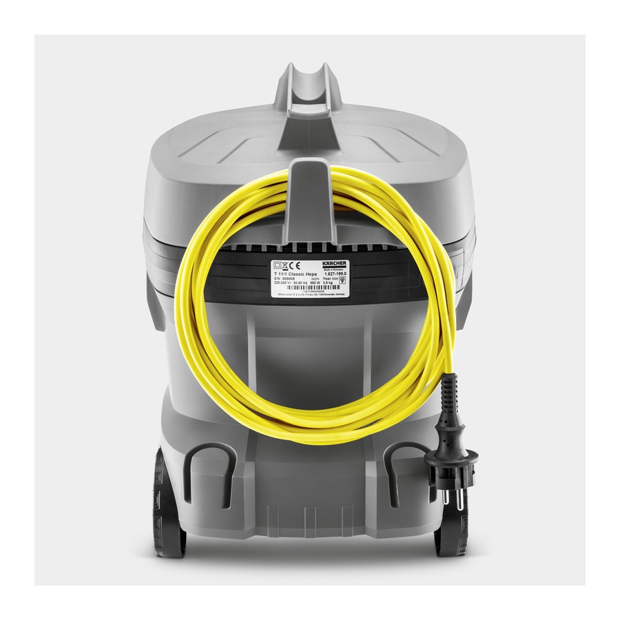 При ємності 11 літрів, вага пилососа становить всього 4,2 кг. Практична ручка для перенесення і ергономічна форма, стійка до перекидання. T 11/1 Classic HEPA дуже компактний, зручний при перенесенні і забезпечує тривалу роботу без втоми. Такі аксесуари, як усмоктувальні трубки і насадка для підлоги, можна зручно розмістити на пилососі. У комплект входить фільтр-мішок з флісу.