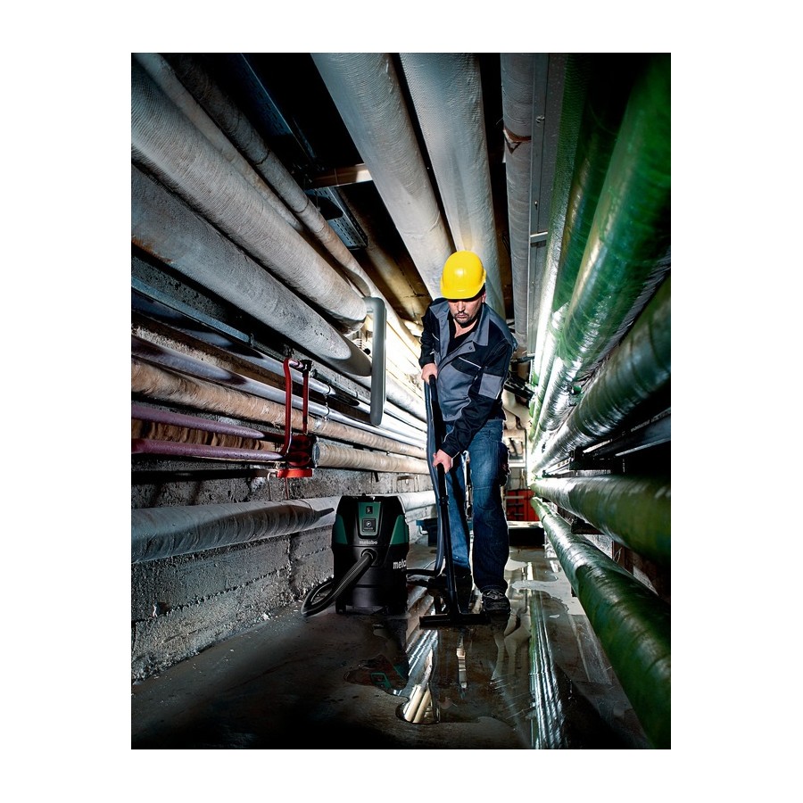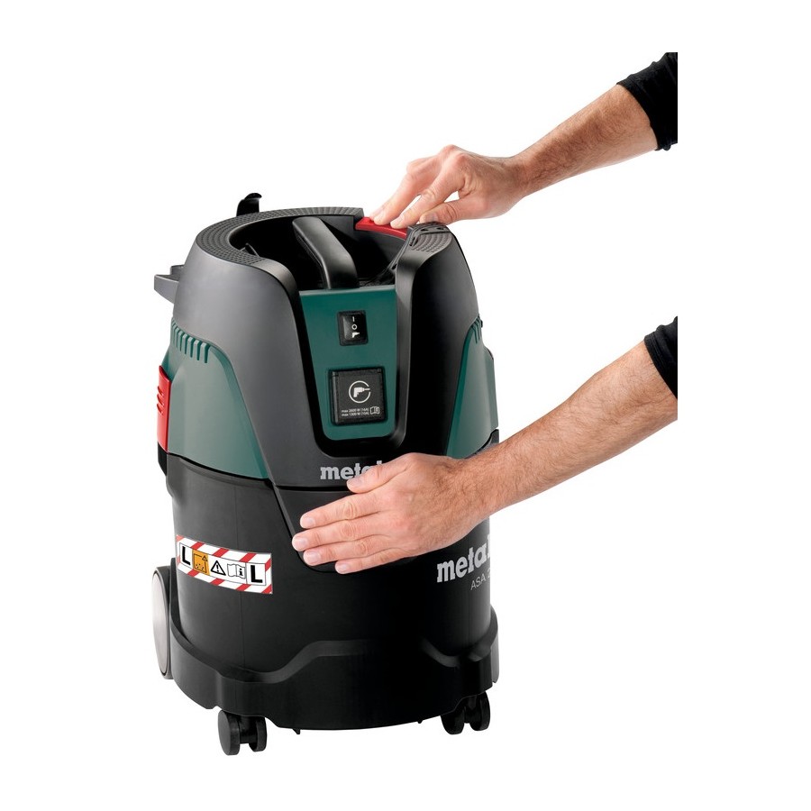 Розетка для електроінструменту з метою забезпечення автоматичного включення/відключення пилососа. PressClean: ручна очистка фільтра інтенсивним потоком повітря, активується вимикачем на пилососі в перервах в роботі. Захист користувача: сертифікація відповідно до стандарту ЄС щодо захисту від пилу класу L. Автоматичне відключення під час вологого прибирання при досягненні максимального рівня заповнення бака. З інтегрованою можливістю видування для продувки, просушування і відведення відпрацьованого повітря. Кріплення для кабелю і шланга спрощує процес транспортування. Практичне відділення для приладдя і поверхня для зберігання.