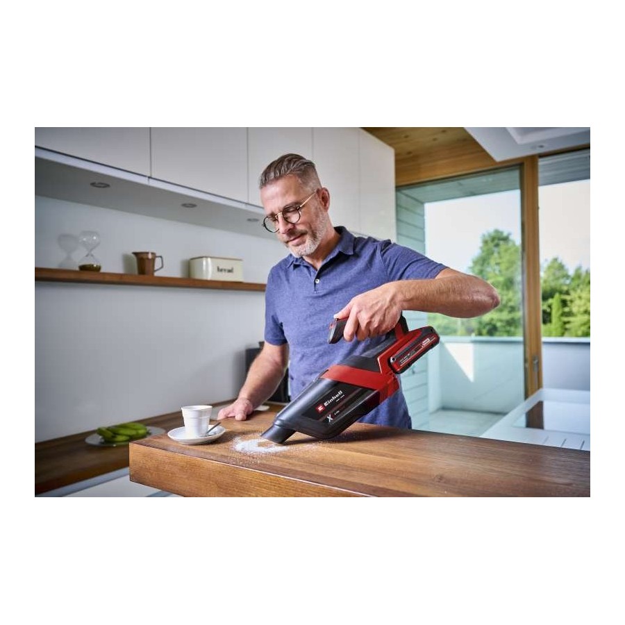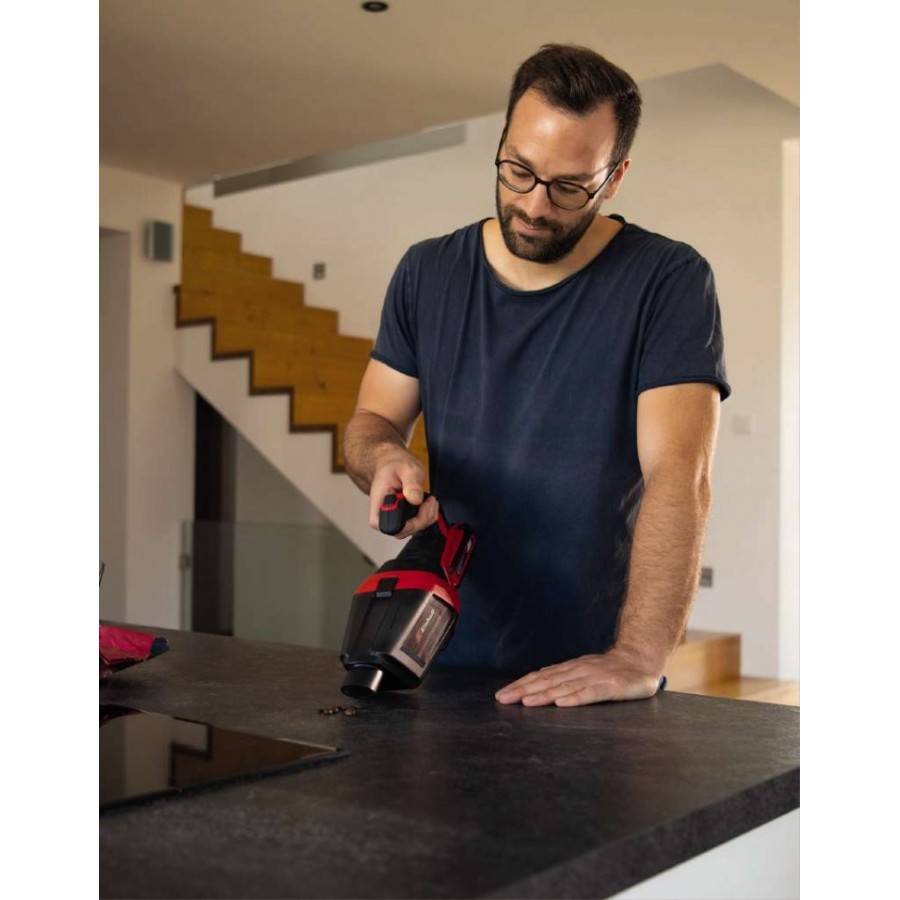 Якщо ви хочете прибрати підлогу, використовуйте подовжувальні трубки 70 см. Пилосос акумуляторний Einhell TE-HV 18/06 Li - Solo має 2 швидкості (ECO/BOOST) для оптимального використання акумулятора. Фільтр можна очистити водою, повністю висушений використовувати повторно. Ємність контейнера порохотягу 600 мілілітрів. Інструмент поставляється без акумулятора і зарядного пристрою, але він може бути приведений в дію за допомогою Power X-Change акумулятора.