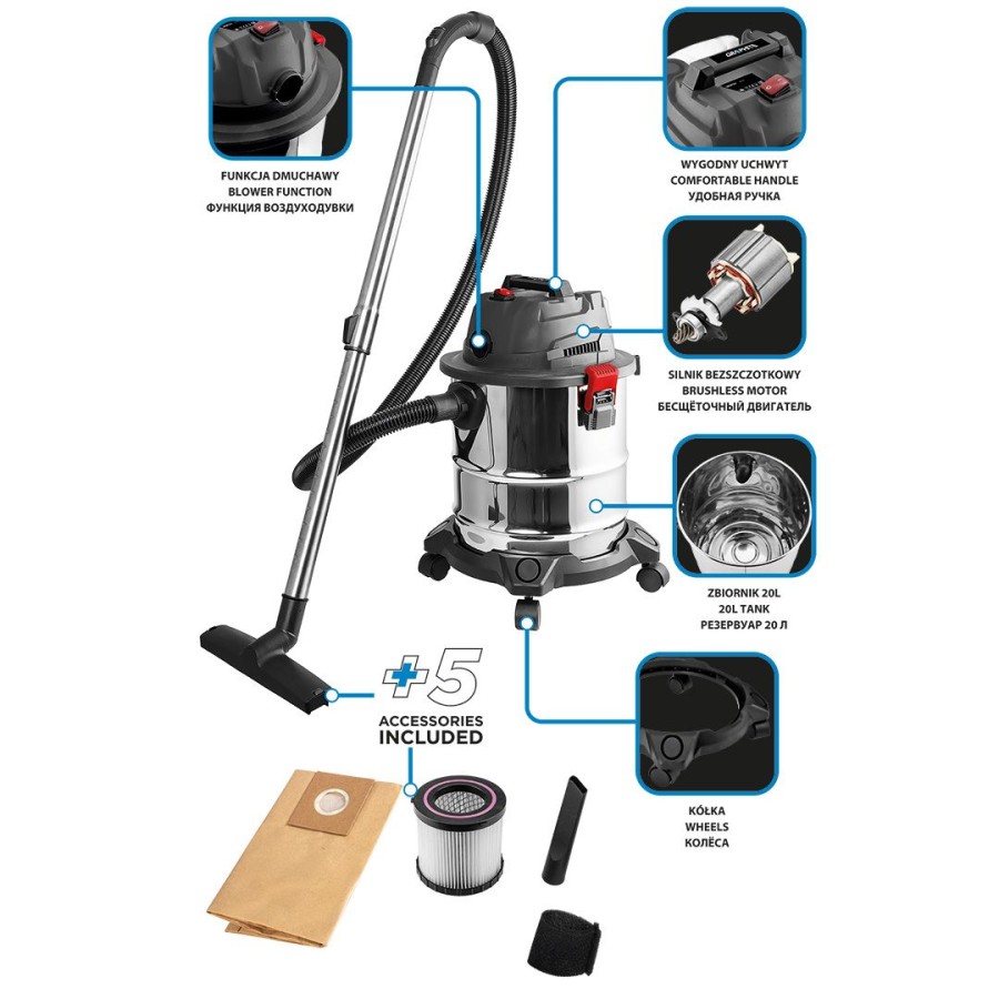 Цей пилосос є відмінним рішенням для прибирання будинку, гаража, підвалу або зовнішніх територій, забезпечуючи ефективне очищення без обмежень, пов'язаних із живленням від мережі.