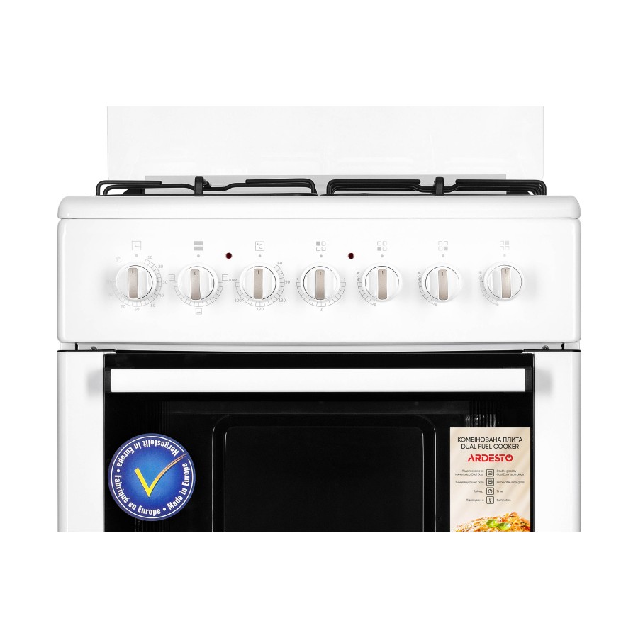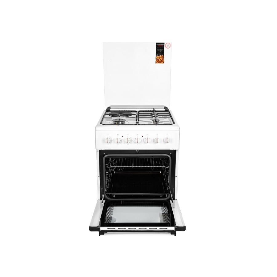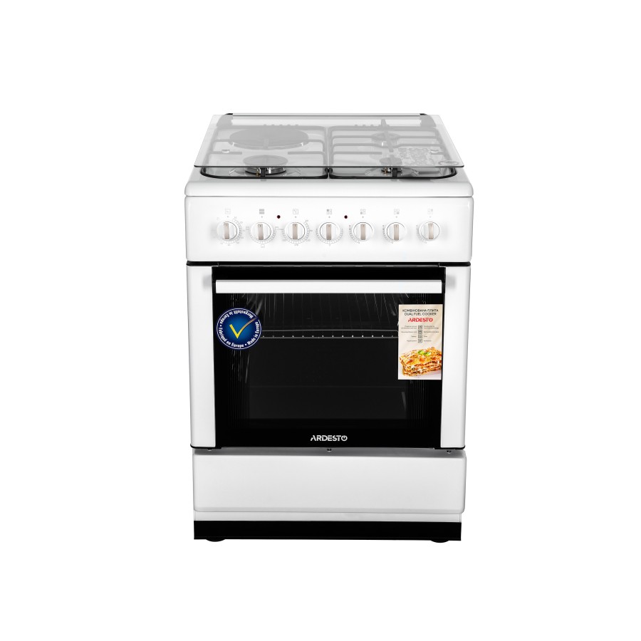 Економічний клас енергетичної ефективності А духової шафи плити ARDESTO FSC-F6060CW гарантує знижене споживання електроенергії. Дверцята оснащені подвійним змінним склом і легко відкриваються завдяки ергономічній ручці. Підсвічування в духовій шафі – можливість контролювати приготування улюблених страв. Зберігати форми для випікання та сковорідки можна у місткому висувному відділенні. У комплекті є деко та решітка.