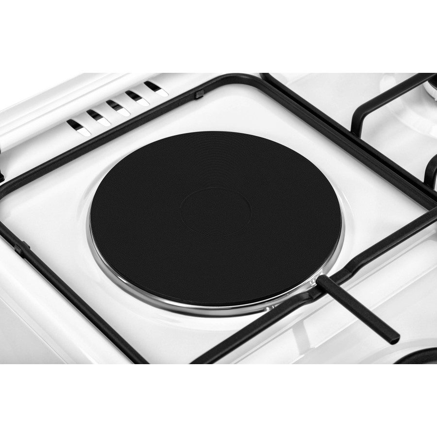 Варильна поверхня плити ARDESTO FSC-F6060CW має стандартне число конфорок (4 шт.) з різною потужністю нагрівання – три газові конфорки + одна електрична. Матеріал поверхні та решіток практичний і простий щодо догляду – емаль не боїться абразивних мийних засобів і впливу корозії. Розібратися з керуванням поверхнею ARDESTO нескладно, це зможе кожна людина, адже автоматичне запалювання в ручці. З-поміж корисних і оптимальних функцій – газ-контроль. Із механічним таймером можна задавати час приготування. Конструкцією плити передбачено ніжки з можливістю регулювання висоти.