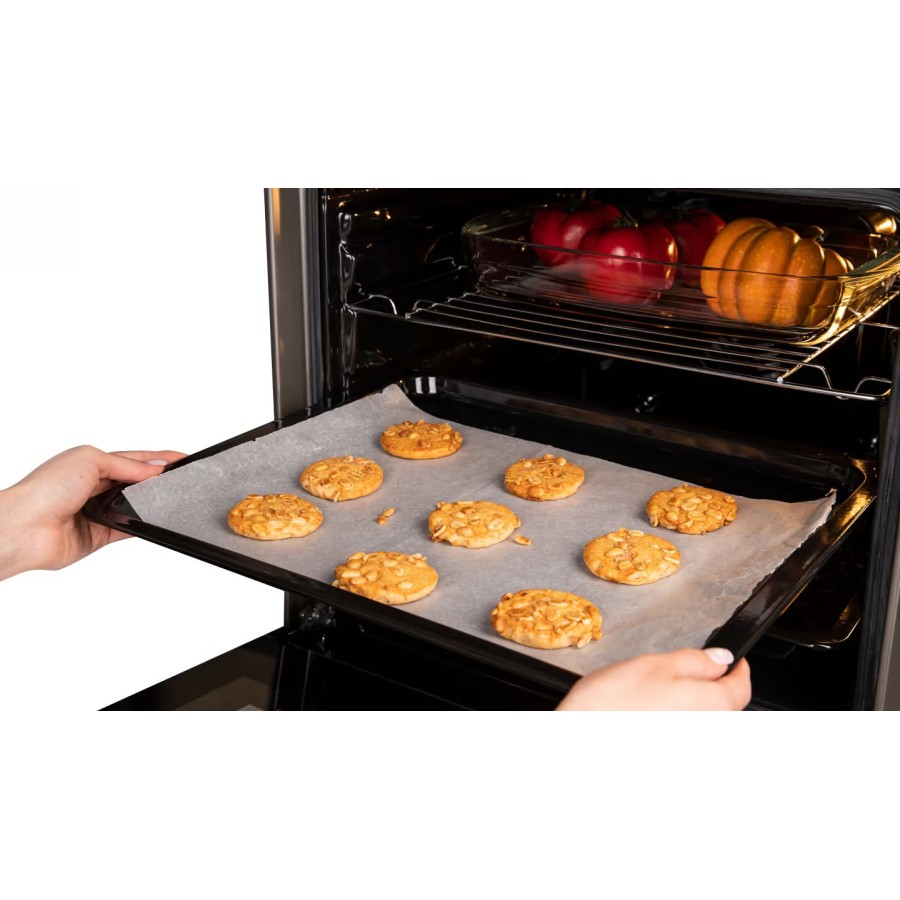 Оновлена внутрішня геометрія духовки забезпечує рівномірну температуру всередині, навіть якщо випікається велика партія на трьох рівнях. Будьте впевнені, що все буде зроблено з усіх боків.