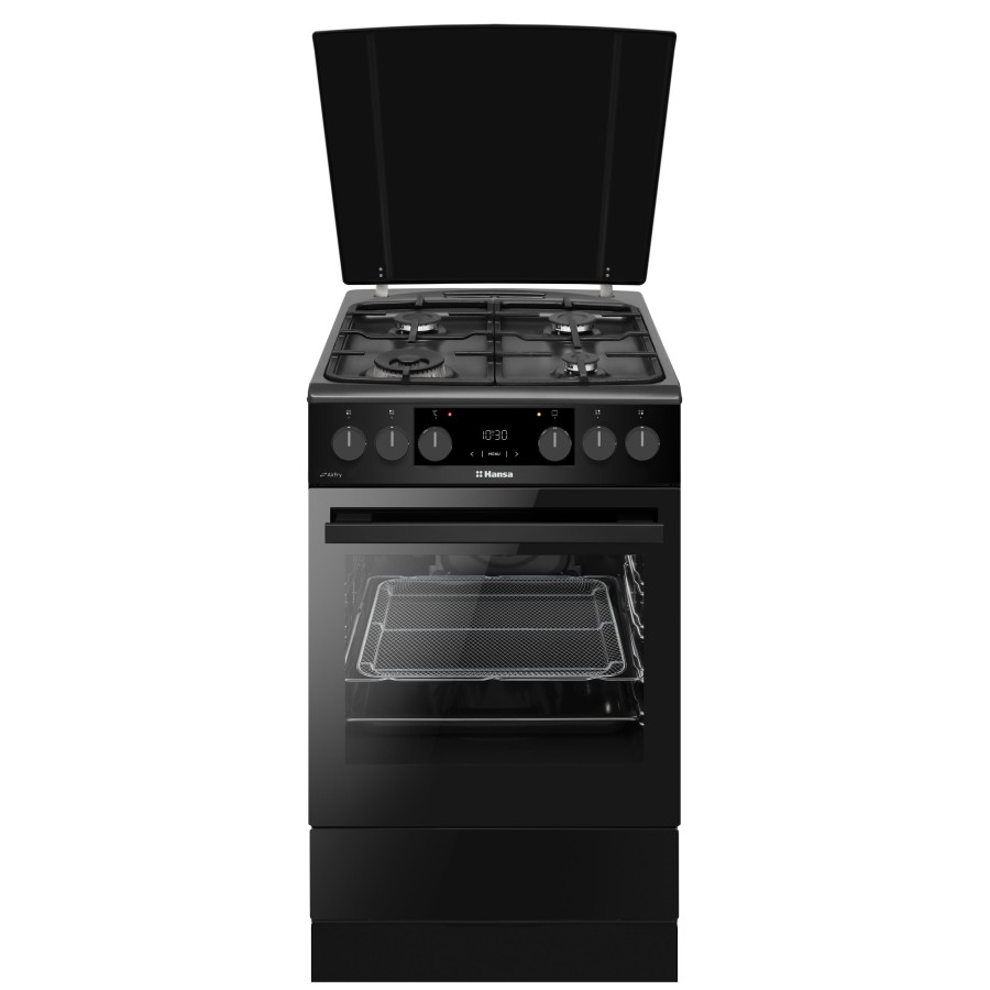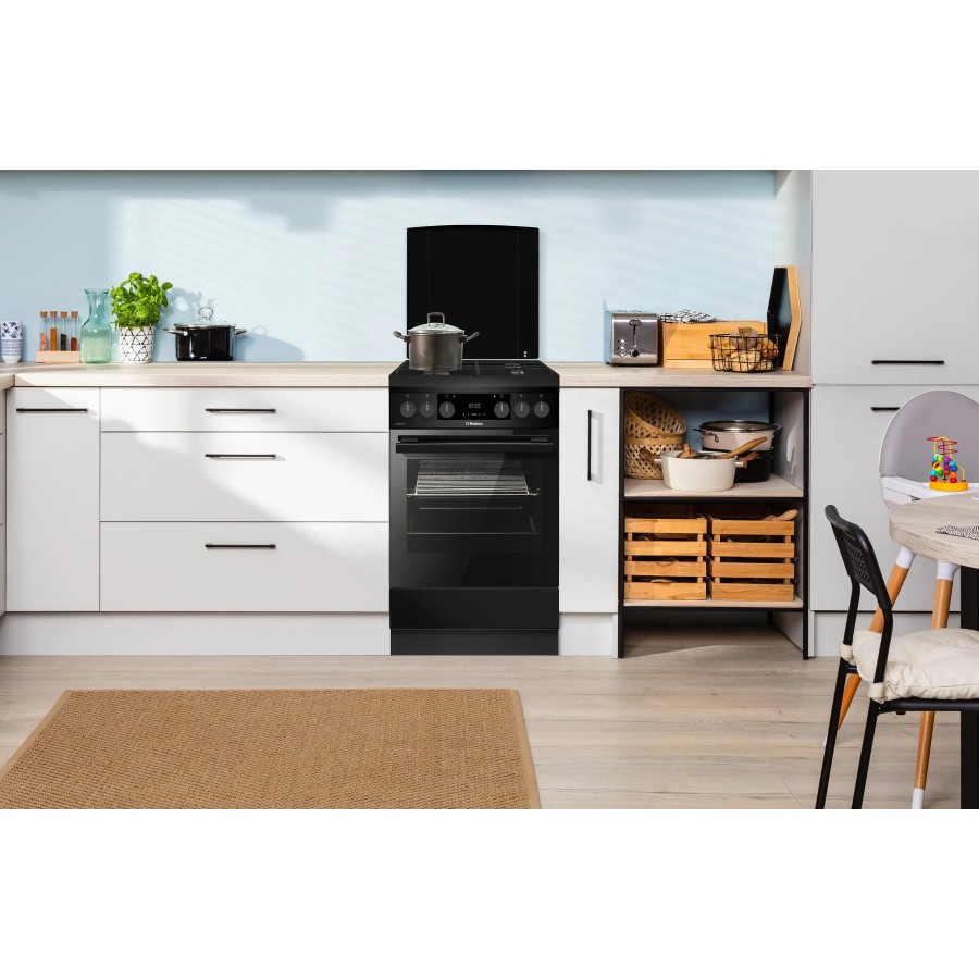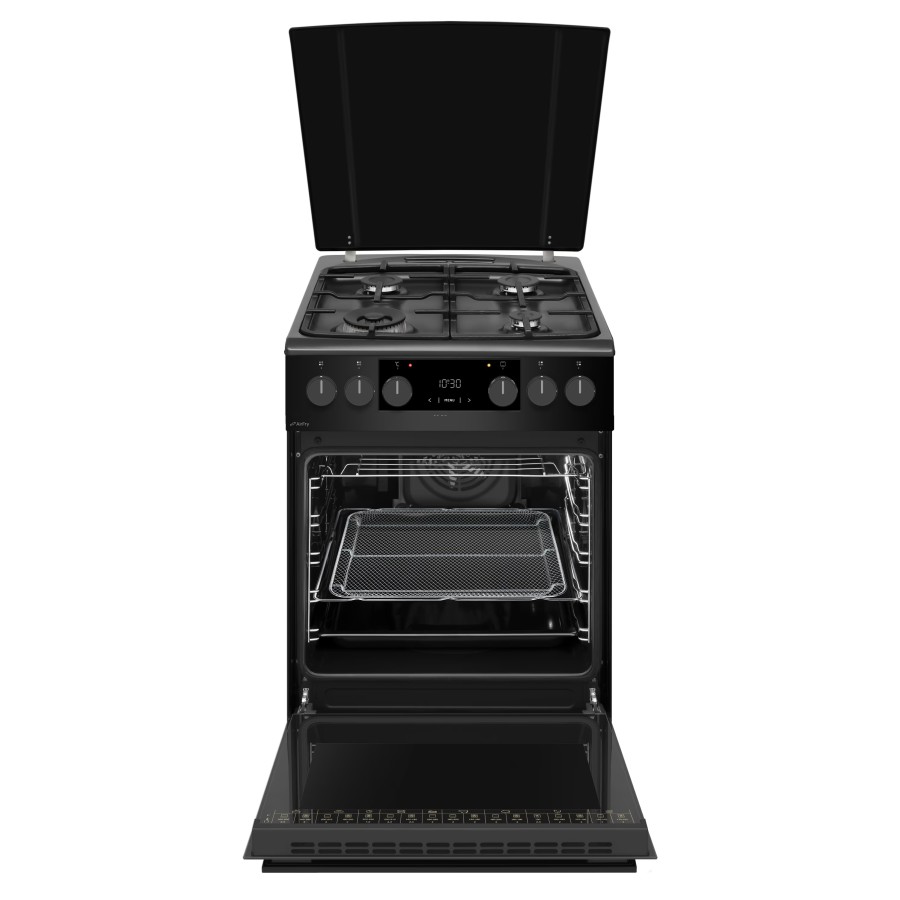 Серед функцій духовки слід виділити конвекцію, дисплей для контролю процесу приготування, таймер і підсвітку, що дозволяють тримати під контролем кожен етап випікання. Внутрішнє покриття виконане з легкоочищуваної емалі, що полегшує догляд за духовкою. Підключення здійснюється до стандартної мережі 230 В, що робить плиту універсальною для будь-якого будинку.
