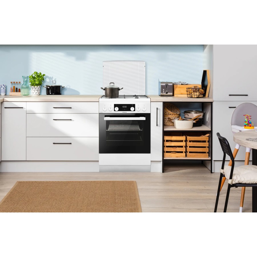 Додаткова стільниця, захист стіни від плям, перешкоджання забрудненню верхньої частини плити при користуванні духовкою — це все про переваги емальованої кришки на плиті Hansa FCMW69329.