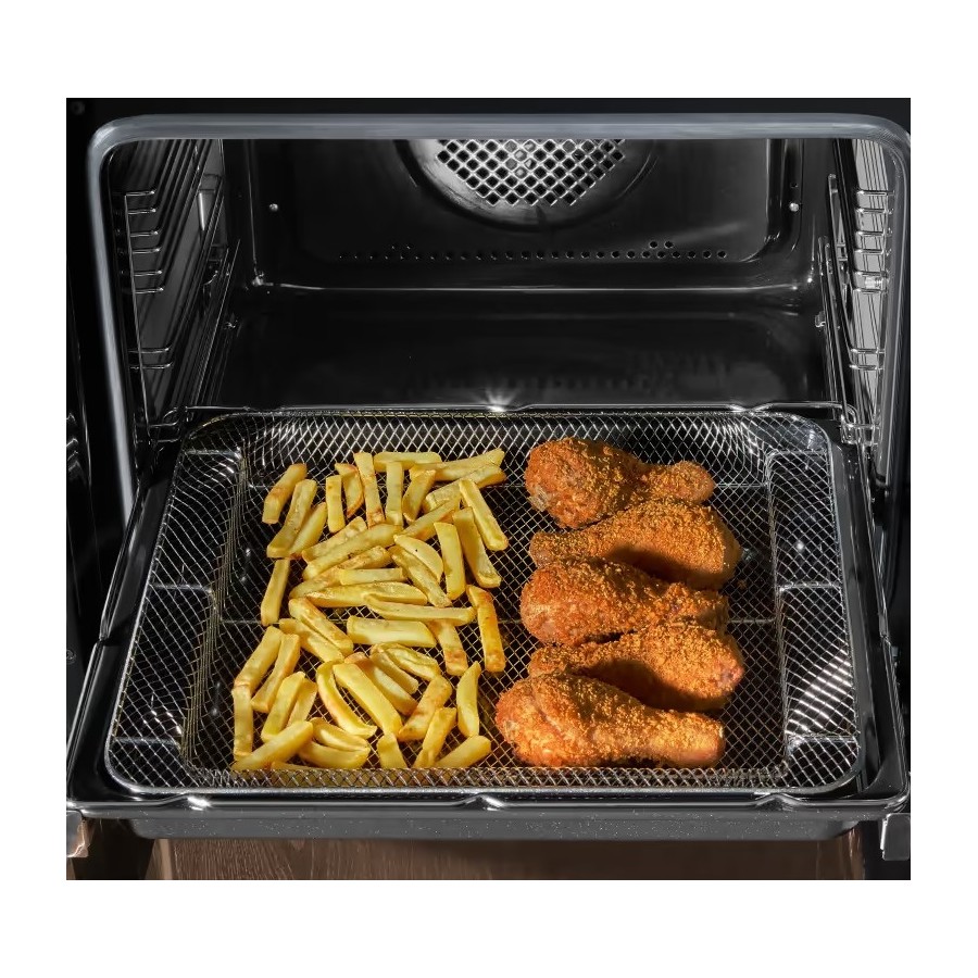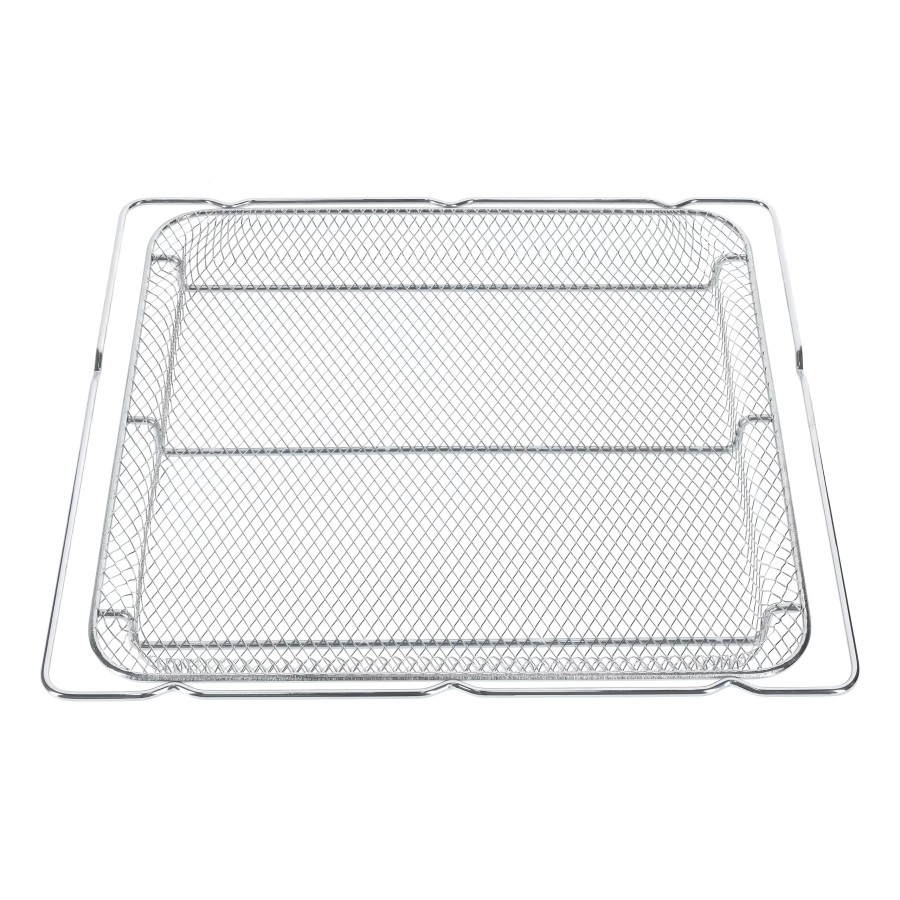 Хрусткі страви без використання олії та жиру? Смажена їжа одночасно легка та корисна? Це можливо завдяки спеціальному сітчастому деко AirFry з антипригарним покриттям, яке забезпечує рівномірну циркуляцію гарячого повітря, ідеальну хрустку скоринку ззовні та соковитість всередині. Тепер ви можете насолоджуватися смачними картоплею фрі, овочевими чіпсами або куркою в клярі у зручному для вас варіанті. Без необхідності додавати олію або перевертати страву під час смаження та з економією часу, адже страви випікаються за менший час.