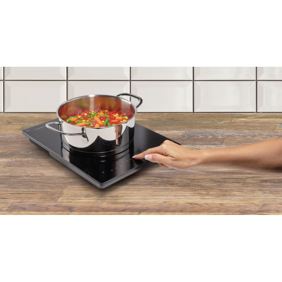 Варильна поверхня Gorenje з однією конфоркою має висоту всього 42 мм, тому вона надзвичайно елегантна й портативна. Її також обладнано двома корисними запобіжними функціями — замком від дітей і автоматичним вимиканням після прибирання посуду.