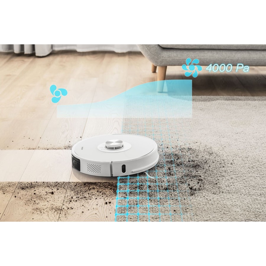Центральна ротаційна щітка та бічна ротаційна щітка в комбінації з великою потужністю всмоктування 4000 Па допоможуть досягти найкращого результату. Преміум акумулятор 5000 мАг Li-lon забезпечить можливість прибирання до 200 хв. Ви також оціните UV-C лампу, що гарантує дезінфекцію всієї підлоги і знищення небажаних вірусів і бактерій.