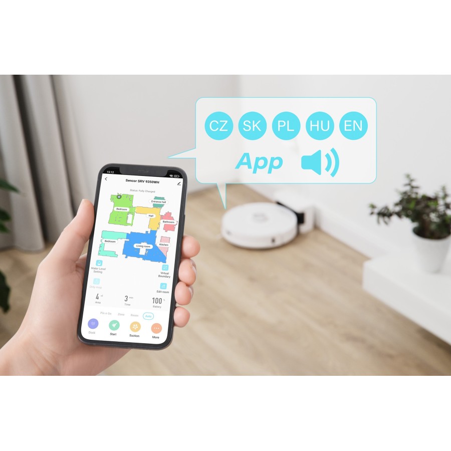 Велика перевага пилососа полягає в одночасному сухому та вологому прибиранні. Можна вибрати 4 рівні сили всмоктування і 3 рівні інтенсивності вологого прибирання. Також доступна функція автоматичного збільшення потужності для килима. Само собою зрозуміло просте обслуговування і можливість сполучення робота-пилососа з розумним додатком Sencor HOME за допомогою Wi-Fi. Також можна використовувати дистанційне керування. З функціями Multi-rooming і Multi-mapping ви можете планувати прибирання для кожного приміщення окремо, а також до 5 поверхів або кілька квартир одночасно.