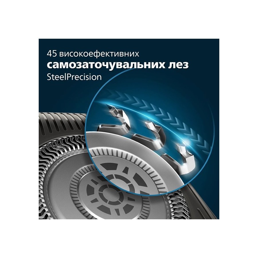 Потужна система очищення ефективно очищає та змащує бритву лише за 1 хвилину, підтримуючи її в оптимальному стані. Очищення бритви на станції в 10 разів ефективніше, ніж звичайне очищення водою**. Це найменша в світі станція очищення, яку можна зручно зберігати і використовувати де завгодно.