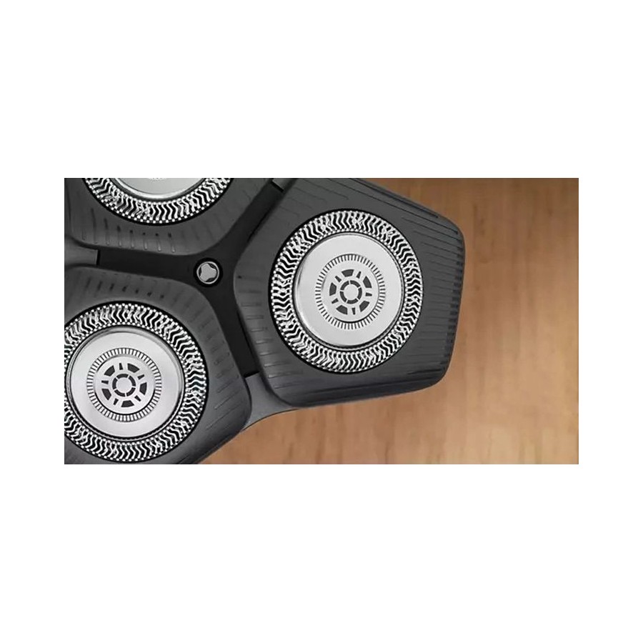 Нова форма голів для гоління розроблена для більш високої точності зрізання щетини. Їхня поверхня оснащена поздовжніми прорізами, які направляють волосся в положення оптимальне для максимально якісного зрізу лезом.