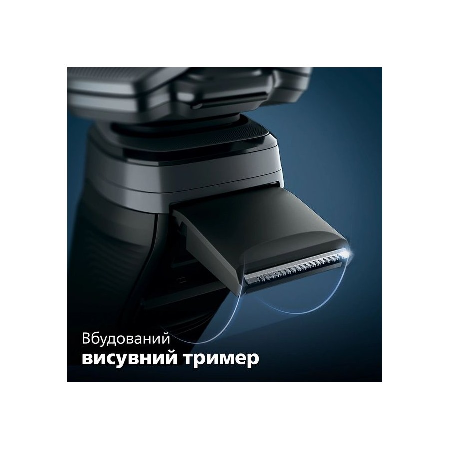 Завершіть свій образ із високоточним відкидним триммером. Він вбудований в корпус бритви, щоб ви могли зручно підтримувати форму вусів і підрівнювати бакенбарди.
