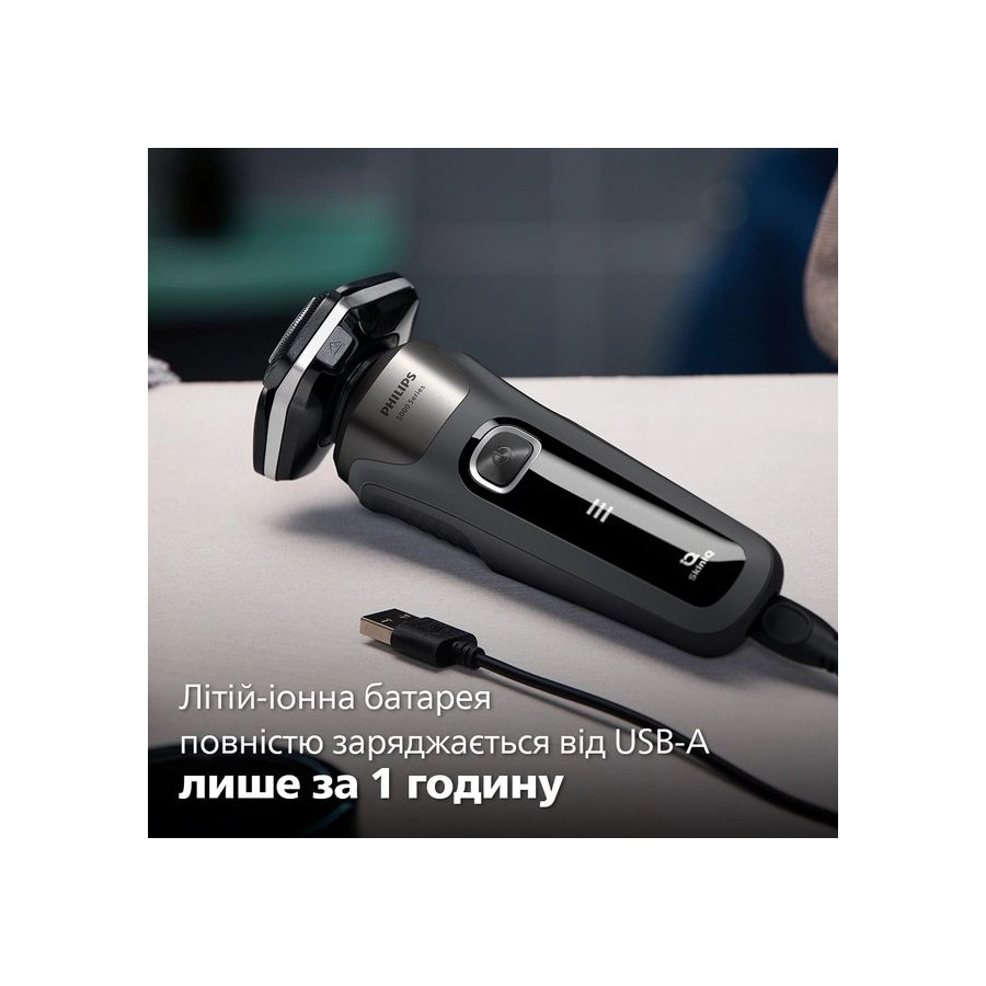 Повна зарядка бритви всього за 1 годину завдяки потужному та енергоефективному літій-іонному акумулятору. Поспішайте? Поставте бритву на зарядку на 5 хвилин, щоб заряду акумулятора вистачило на один сеанс гоління.