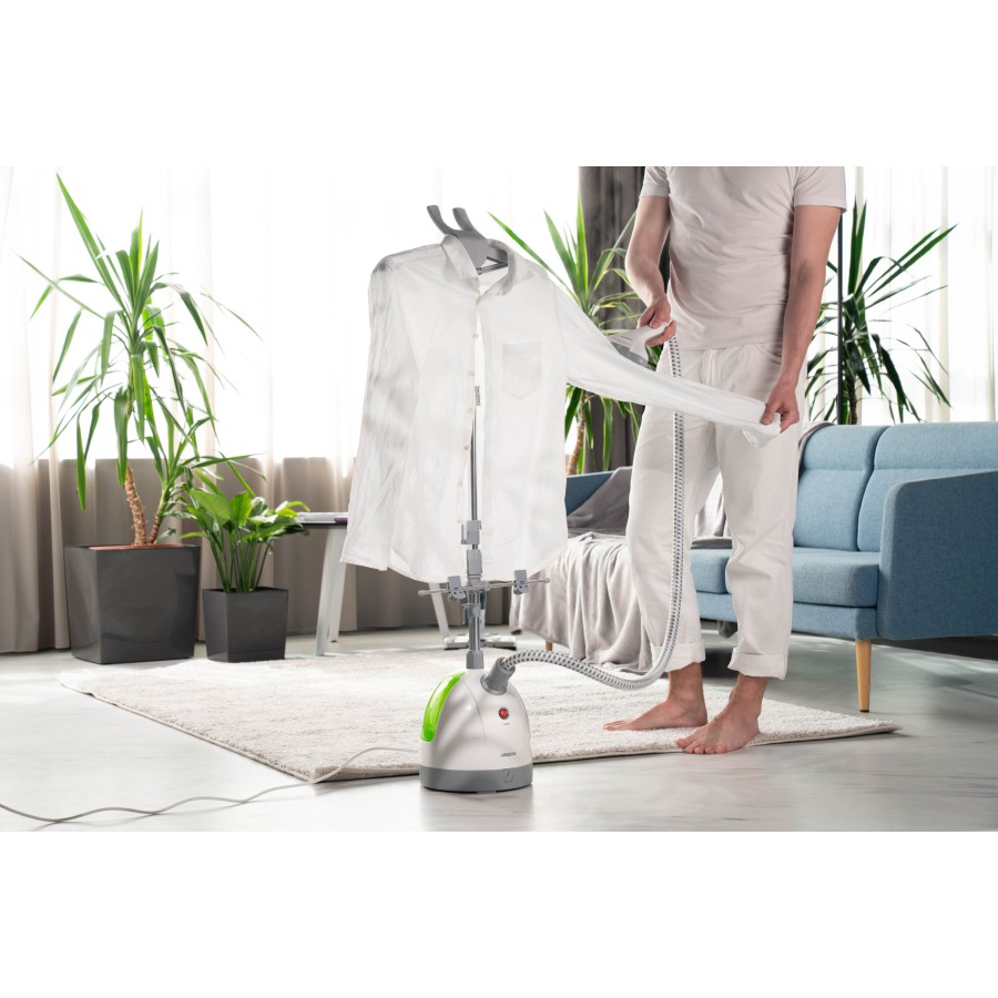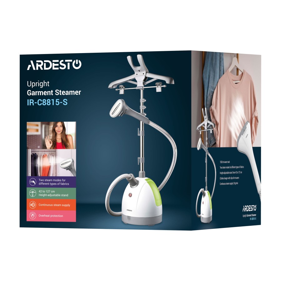 ARDESTO IR-C8815-S допоможе привести до ладу не тільки капелюхи, сорочки й футболки. Пристрій оснащено вішаком із затискачами для штанів. А з огляду на можливість регулювати висоту стійки від 42 до 127 см модель пристосована й до відпарювання довгих суконь.