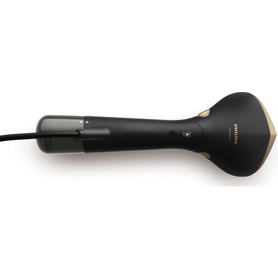 Пристрій 7000 серії має компактний дизайн, що робить його ідеальним рішенням для відпарювання одягу в будь-який час і в будь-якому місці. Прасувальна дошка не потрібна.