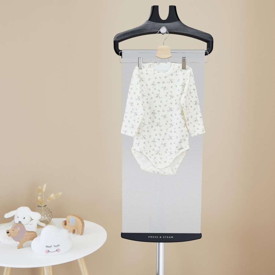 Наша запатентована ексклюзивна вертикальна система Press & Steam забезпечує ідеальні результати. Дає змогу притиснути ваш одяг і утримувати його на місці.