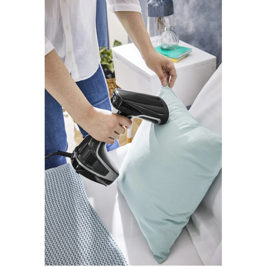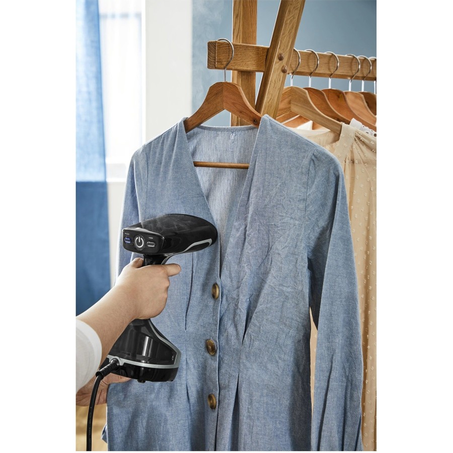 Знімний резервуар для води об'ємом 190 мл пропонує виняткову 10-хвилинну автономність, шнур живлення довжиною 2,6 м, функцію автоматичного вимкнення та два налаштування пари за допомогою надзвичайно інтуїтивно зрозумілого управління.