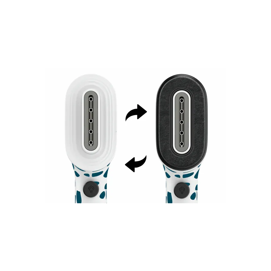 Одна сторона для очищення від ворсу та волосся, а інша – для дбайливого відпарювання будь-яких речей. Швидко перемикайте систему двосторонніх подушечок з одного боку на інший. Догляд за одягом став легким як ніколи раніше!