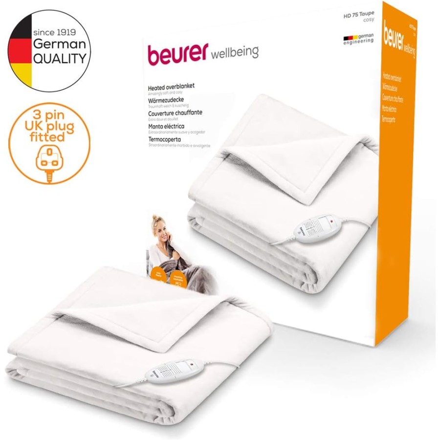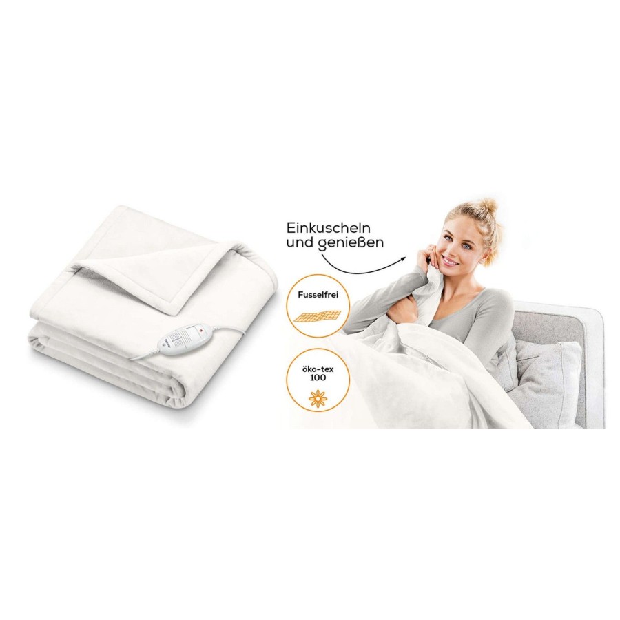 М'яка електроковдра з флісу. Дарує індивідуальне тепло і затишок за будь-якоъ погоди, На вибір шість температурних режимів для максимально комфортного використання. Споживає мало електроенергії, гарантує безпечне використання з системою BSS. Автоматичне вимкнення приблизно через 3 години. Запатентована система електронного регулювання температури. Інформаційний дисплей з підсвічуванням.Система безпеки Beurer (BSS). Можна прати в машині при 30 °C.
